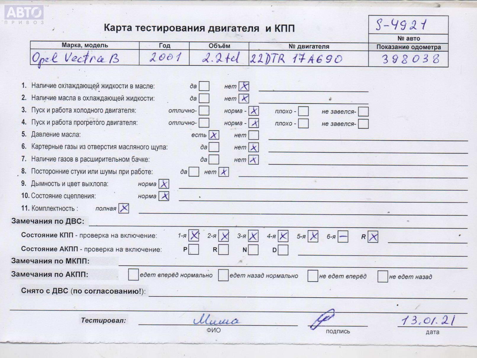 | Марка / Модель / Год: | Opel Vectra B (1995-2002) 2001 |
