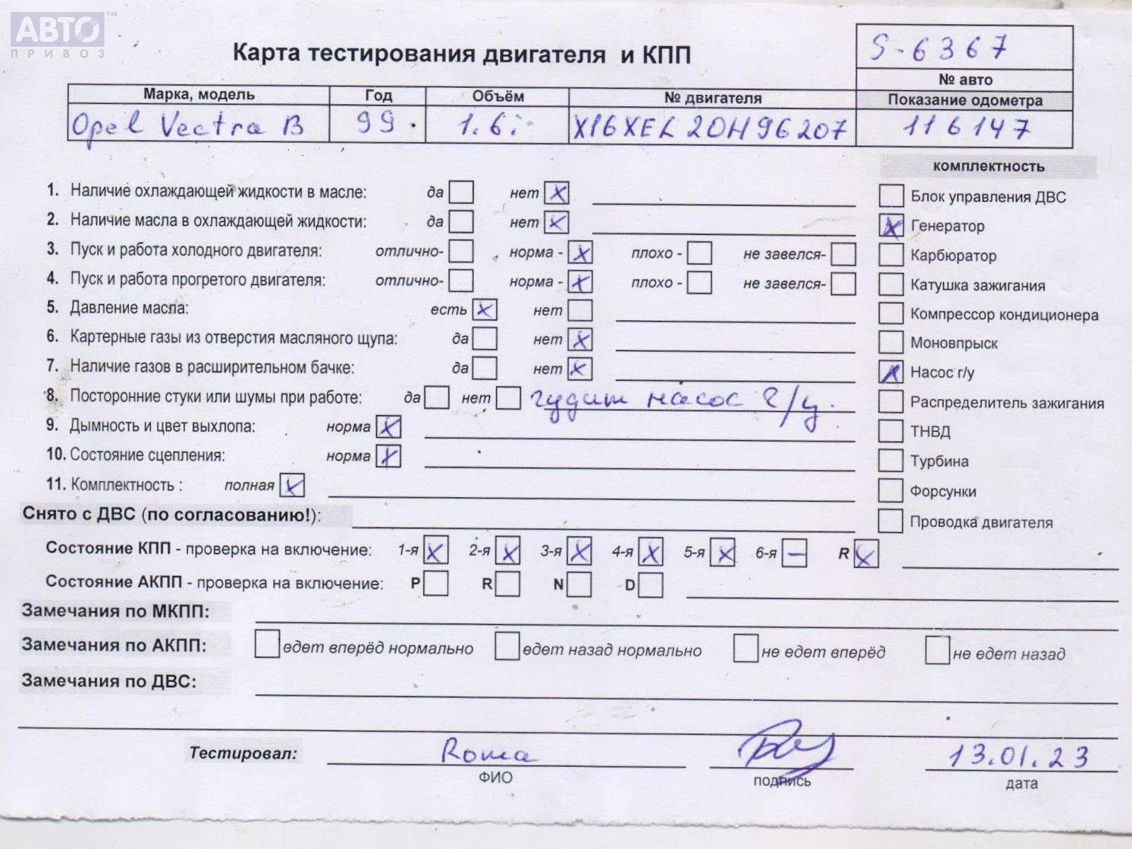 | Марка / Модель / Год: | Opel Vectra B (1995-2002) 1999 |