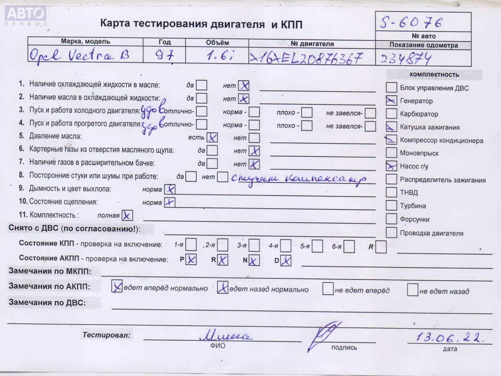 | Марка / Модель / Год: | Opel Vectra B (1995-2002) 1997 |