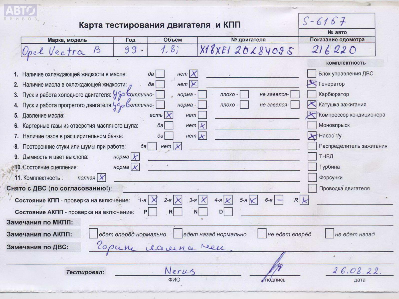 | Марка / Модель / Год: | Opel Vectra B (1995-2002) 1999 |