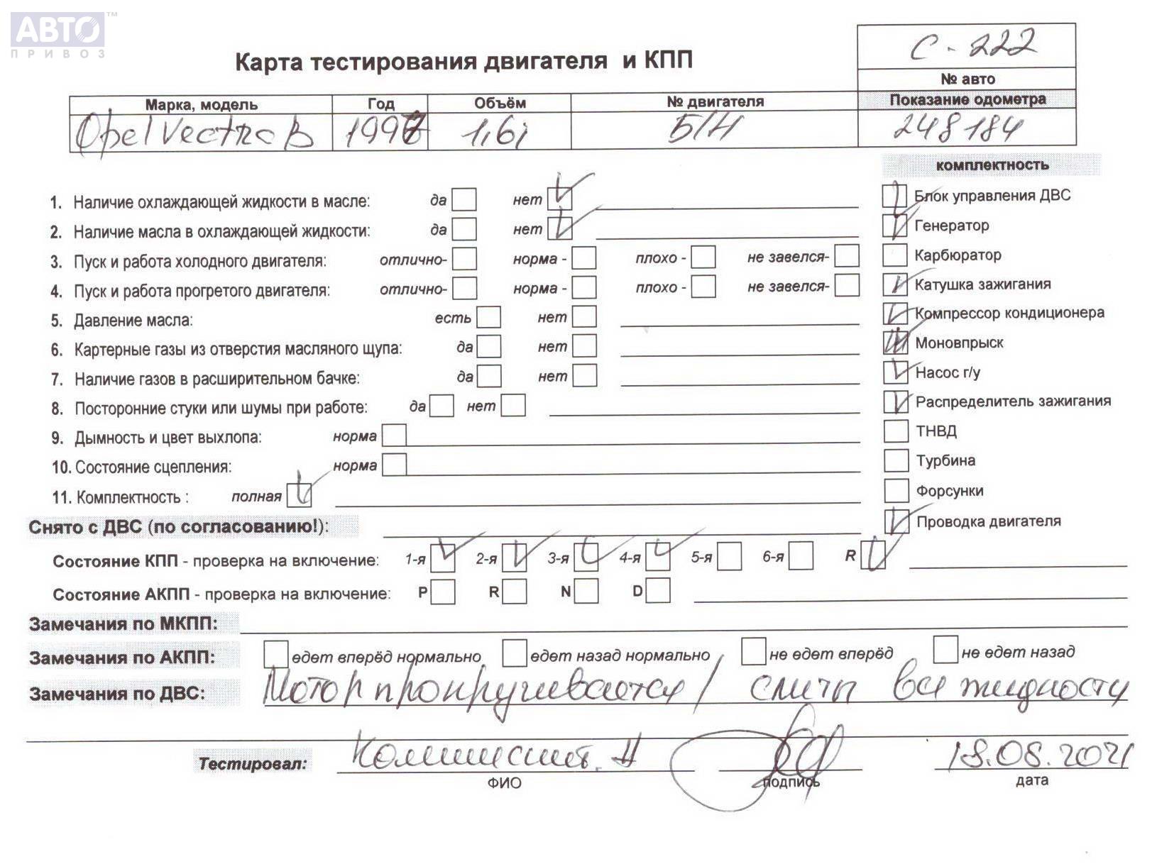 | Марка / Модель / Год: | Opel Vectra B (1995-2002) 1997 |