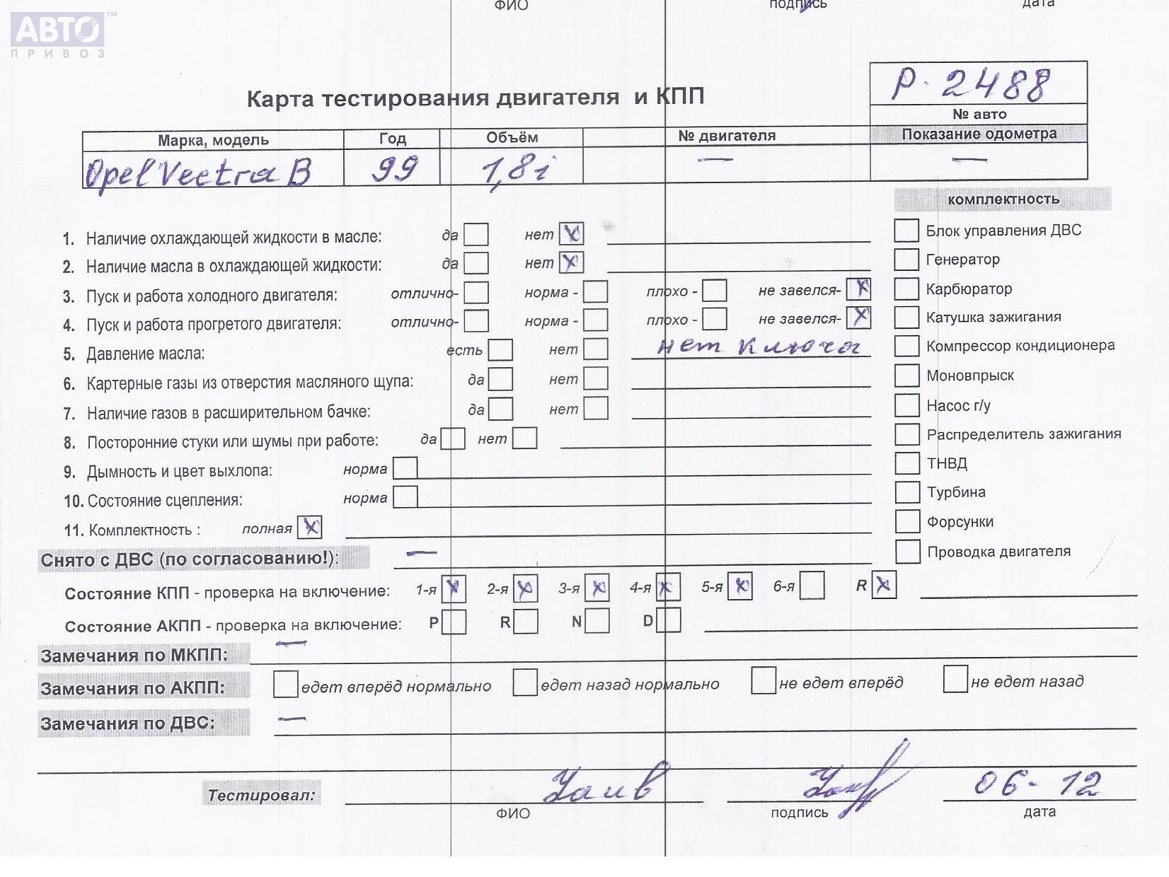 | Автомобиль / VIN: | P2488 W0L0JBF68X7107514 |