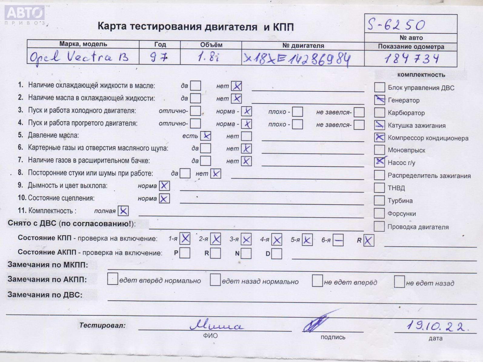 | Марка / Модель / Год: | Opel Vectra B (1995-2002) 1997 |