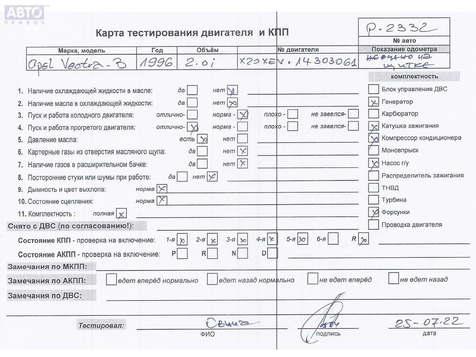 | Марка / Модель / Год: | Opel Vectra B (1995-2002) 1996 |