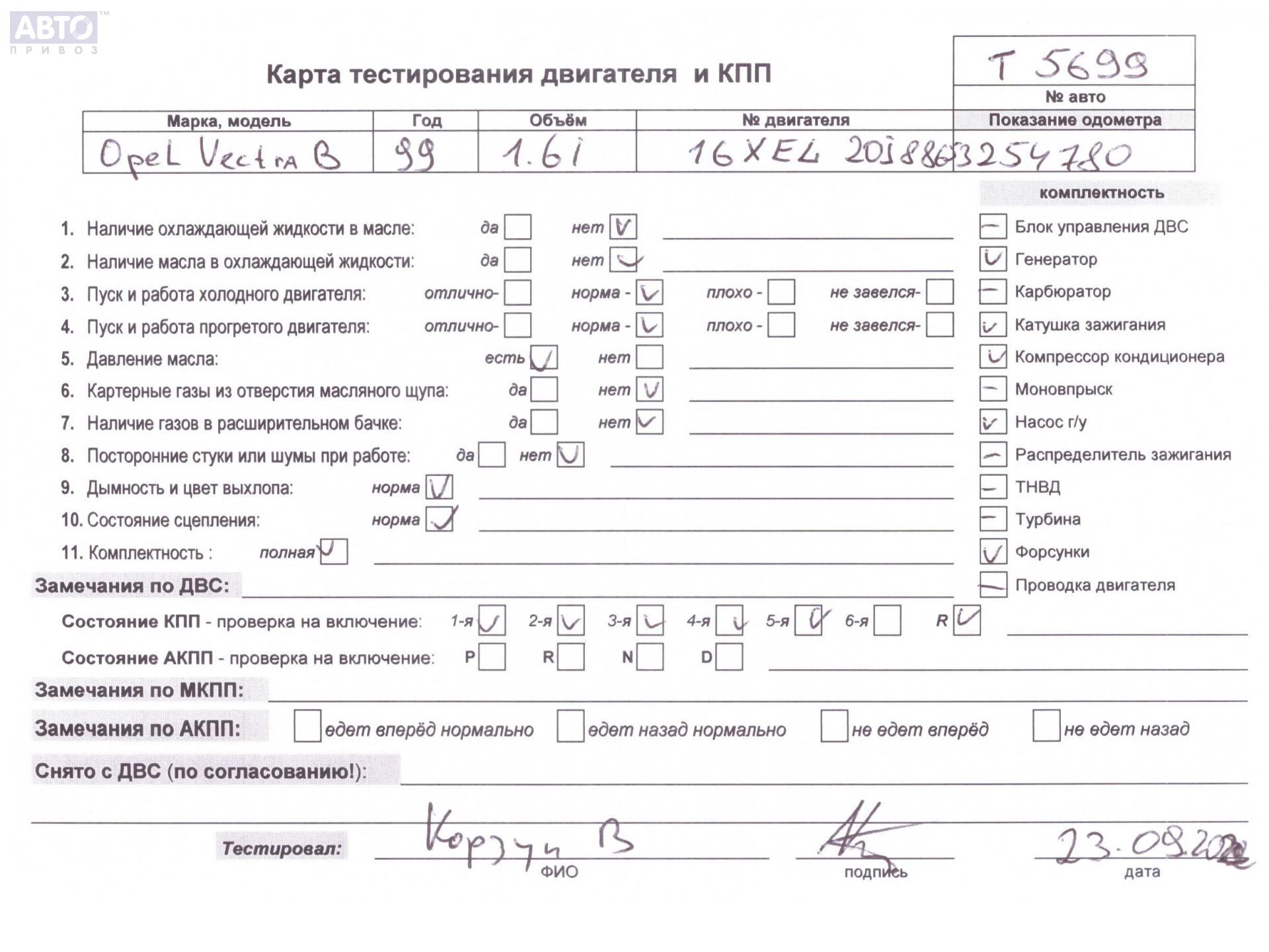 | Марка / Модель / Год: | Opel Vectra B (1995-2002) 1999 |