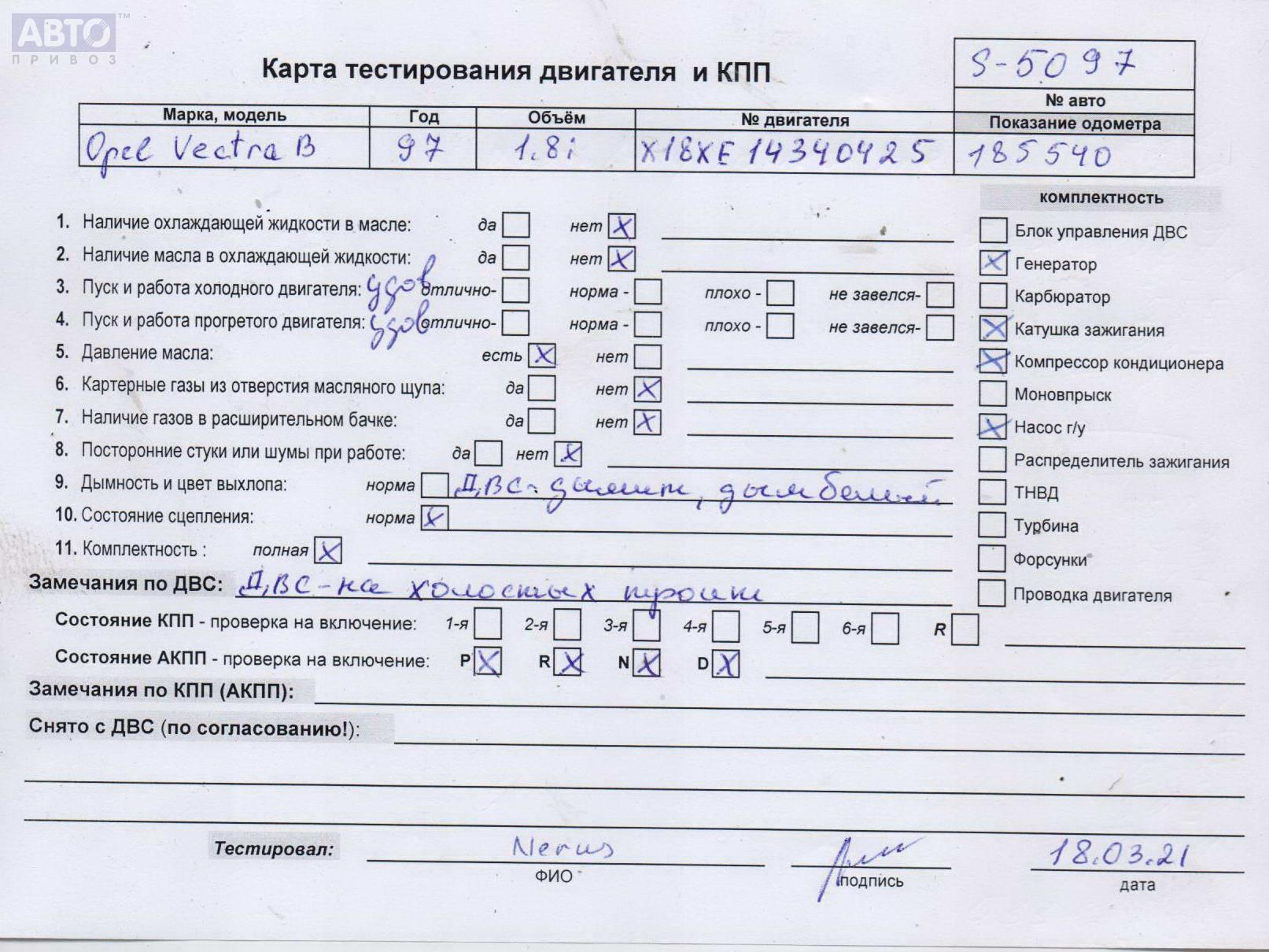| Марка / Модель / Год: | Opel Vectra B (1995-2002) 1997 |