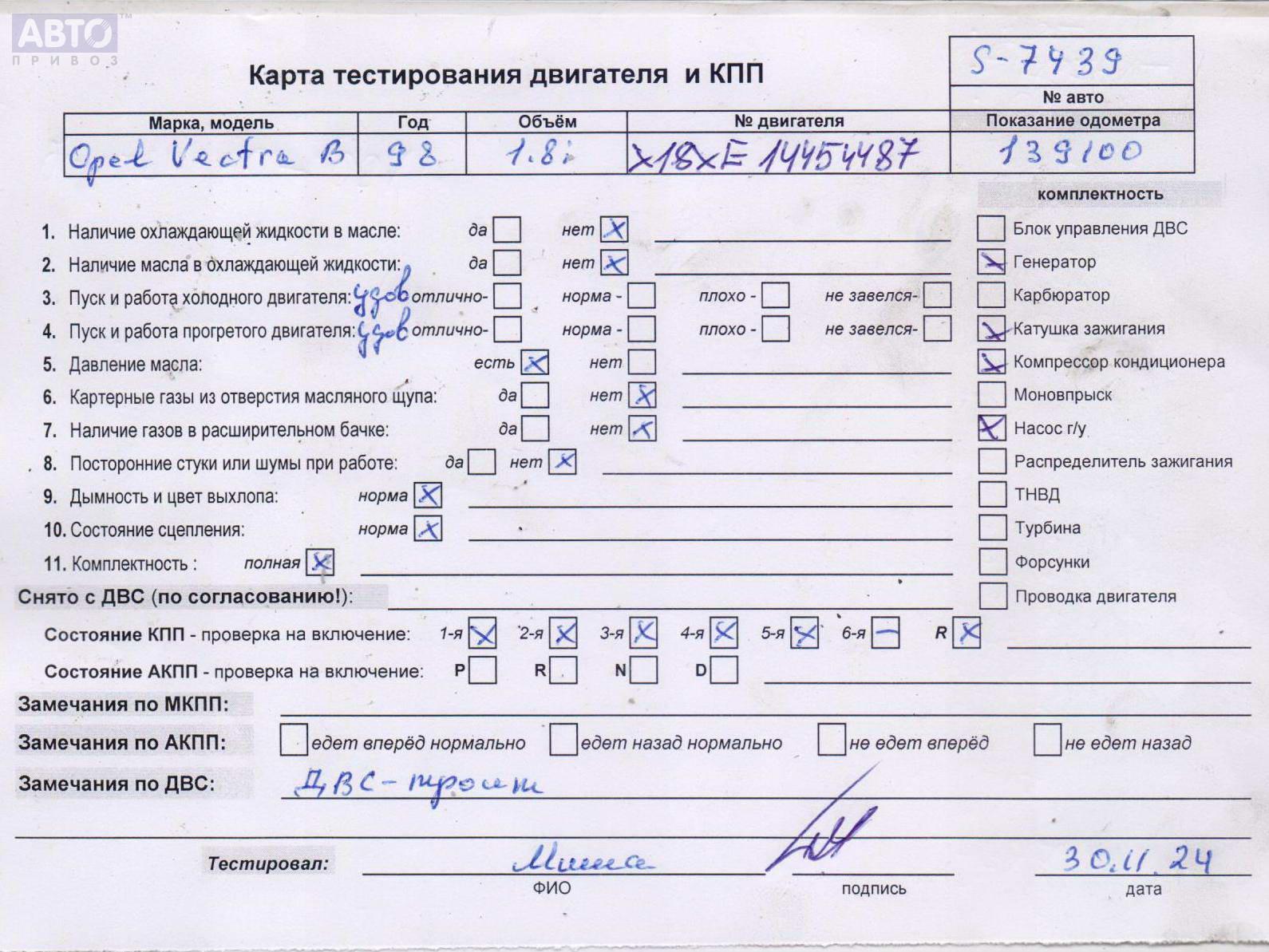 | Автомобиль / VIN: | S7439 W0L0JBF19W1335911 |