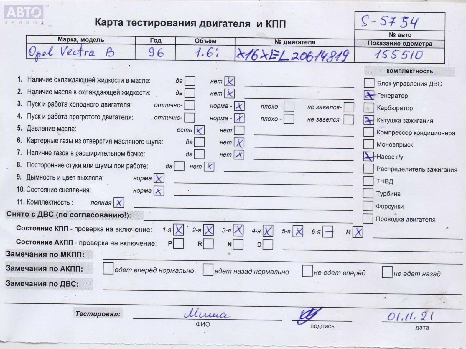 | Марка / Модель / Год: | Opel Vectra B (1995-2002) 1996 |