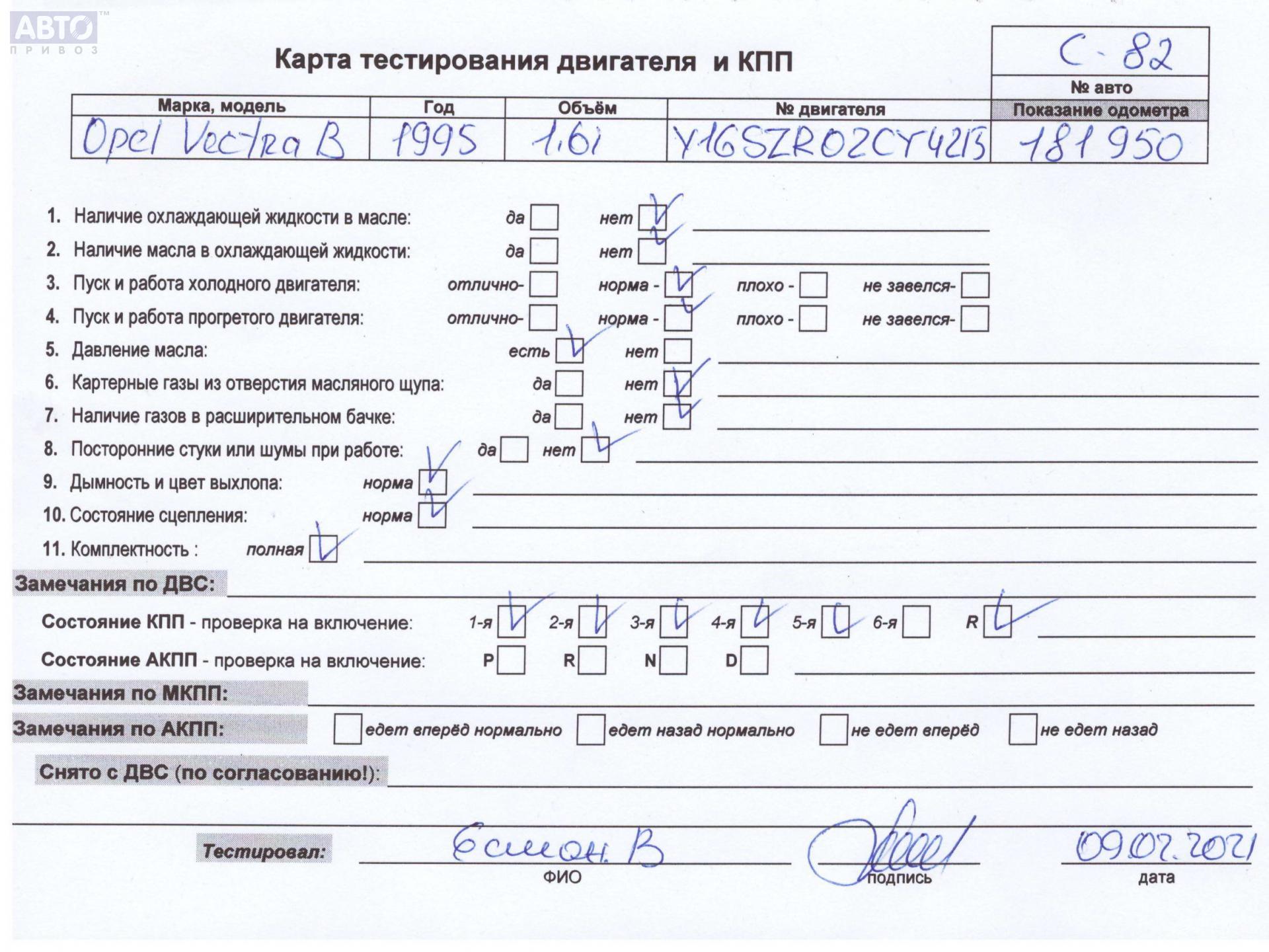 | Марка / Модель / Год: | Opel Vectra B (1995-2002) 1995 |