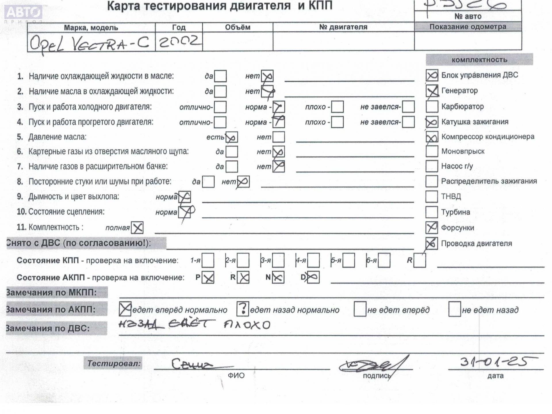 | Марка / Модель / Год: | Opel Vectra C (2002-2008) 2002 |