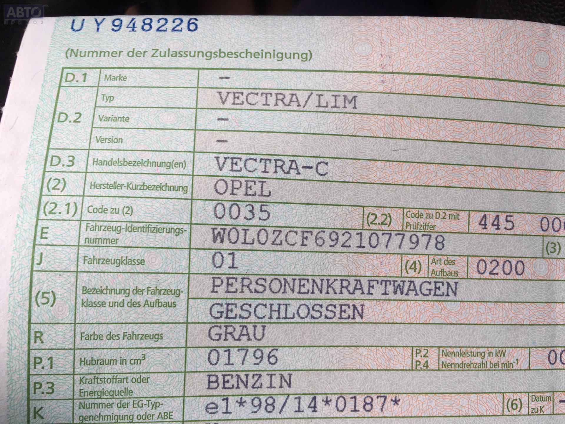 | Марка / Модель / Год: | Opel Vectra C (2002-2008) 2002 |
