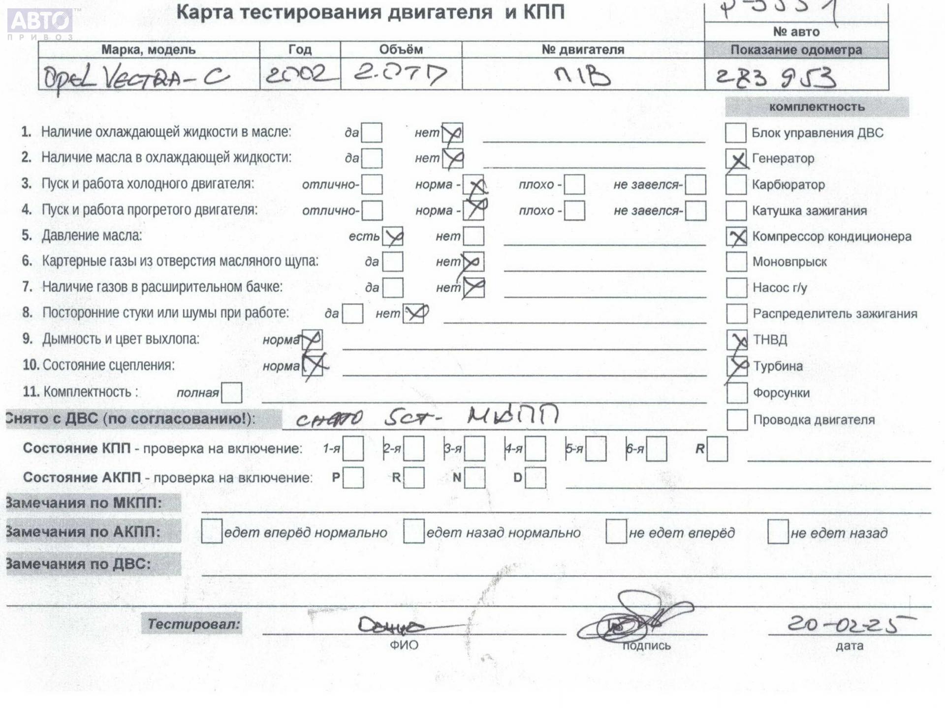 | Марка / Модель / Год: | Opel Vectra C (2002-2008) 2002 |