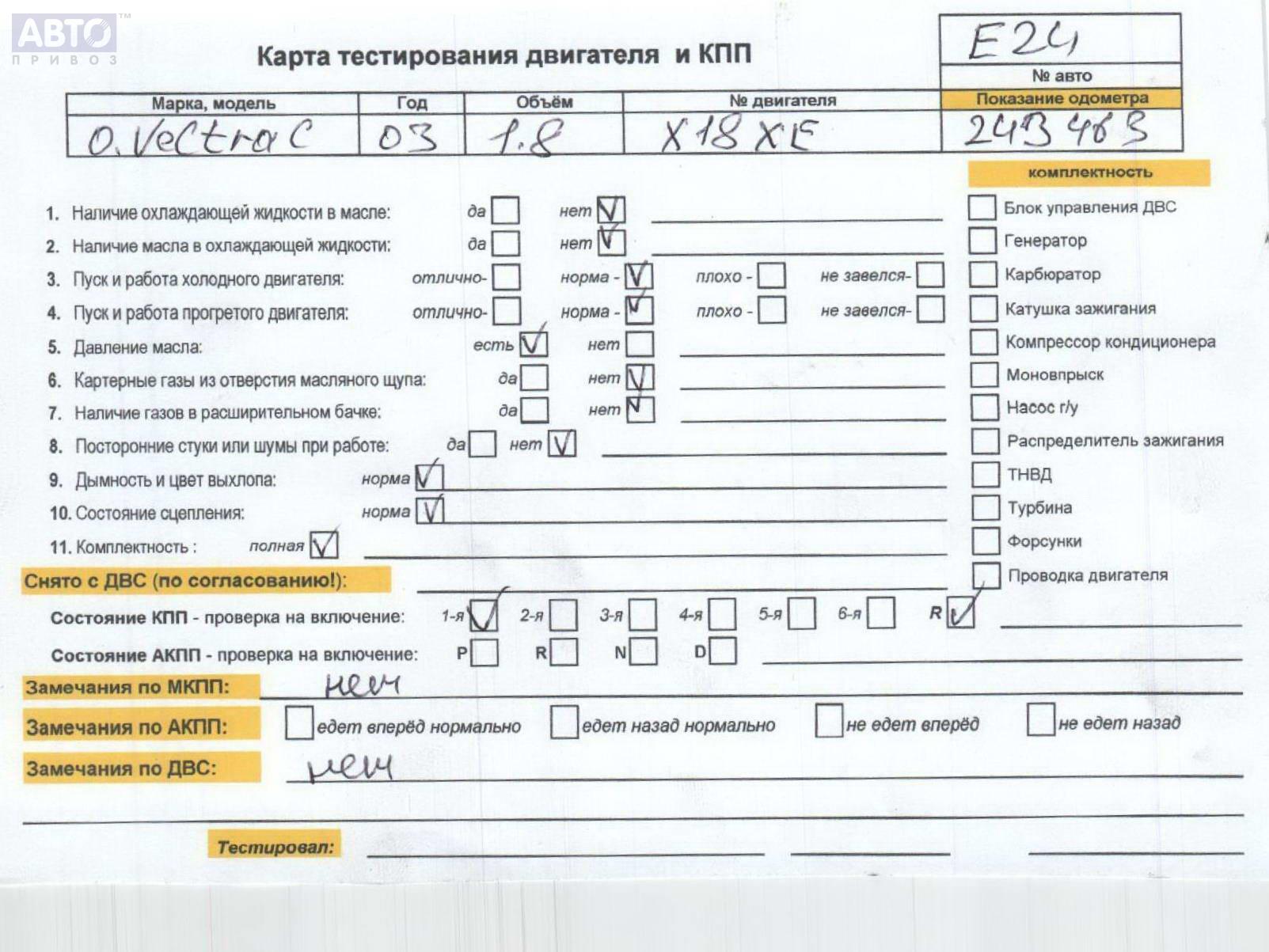 | Марка / Модель / Год: | Opel Vectra C (2002-2008) 2003 |