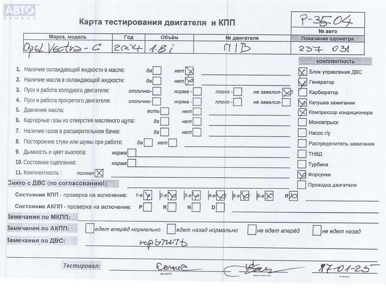 | Марка / Модель / Год: | Opel Vectra C (2002-2008) 2005 |