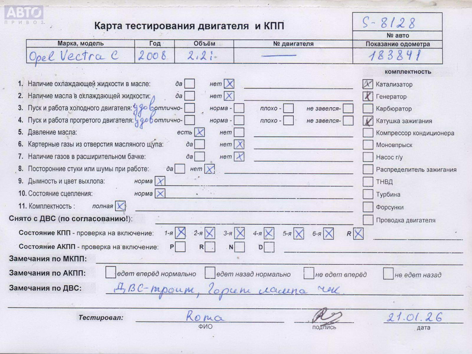 | Марка / Модель / Год: | Opel Vectra C (2002-2008) 2008 |