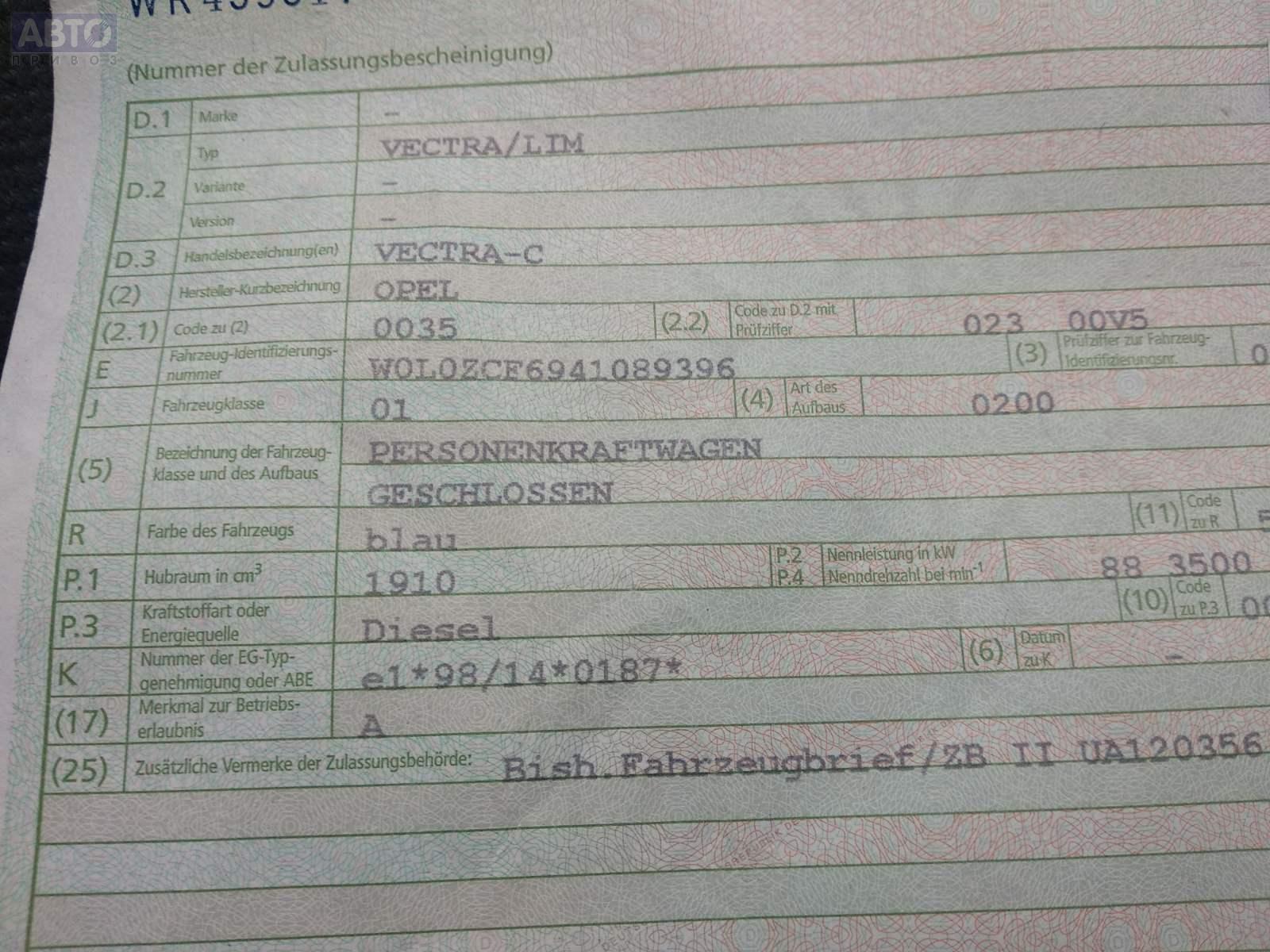 | Марка / Модель / Год: | Opel Vectra C (2002-2008) 2004 |