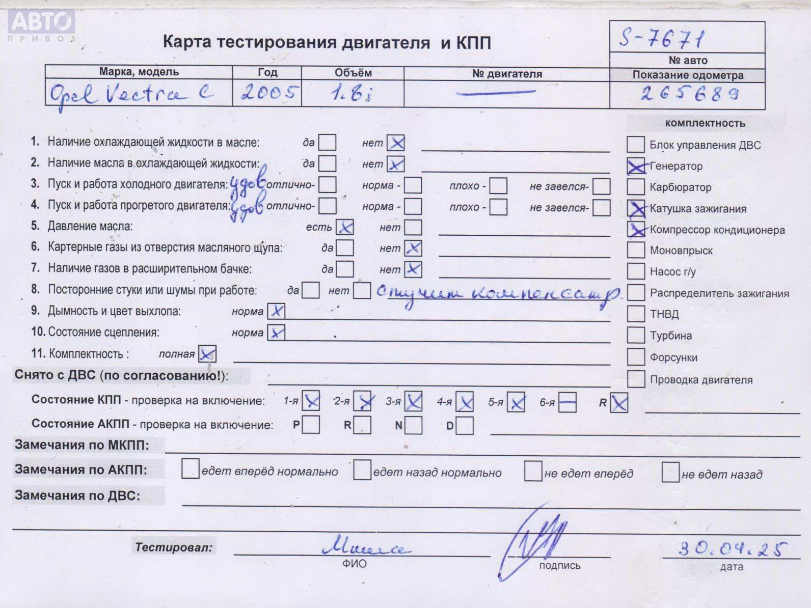 | Марка / Модель / Год: | Opel Vectra C (2002-2008) 2005 |