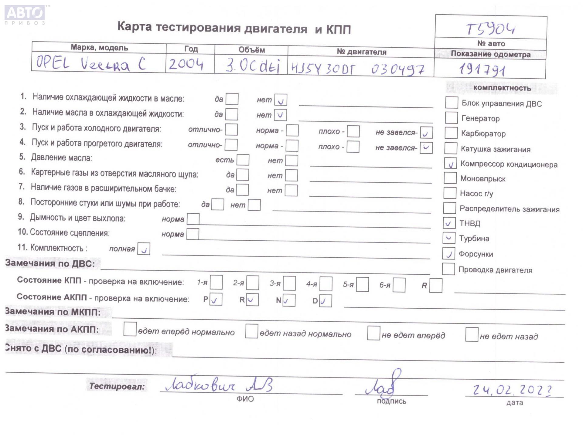 | Марка / Модель / Год: | Opel Vectra C (2002-2008) 2004 |