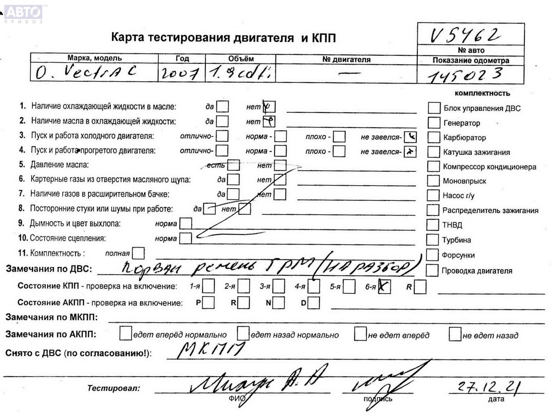 | Марка / Модель / Год: | Opel Vectra C (2002-2008) 2007 |