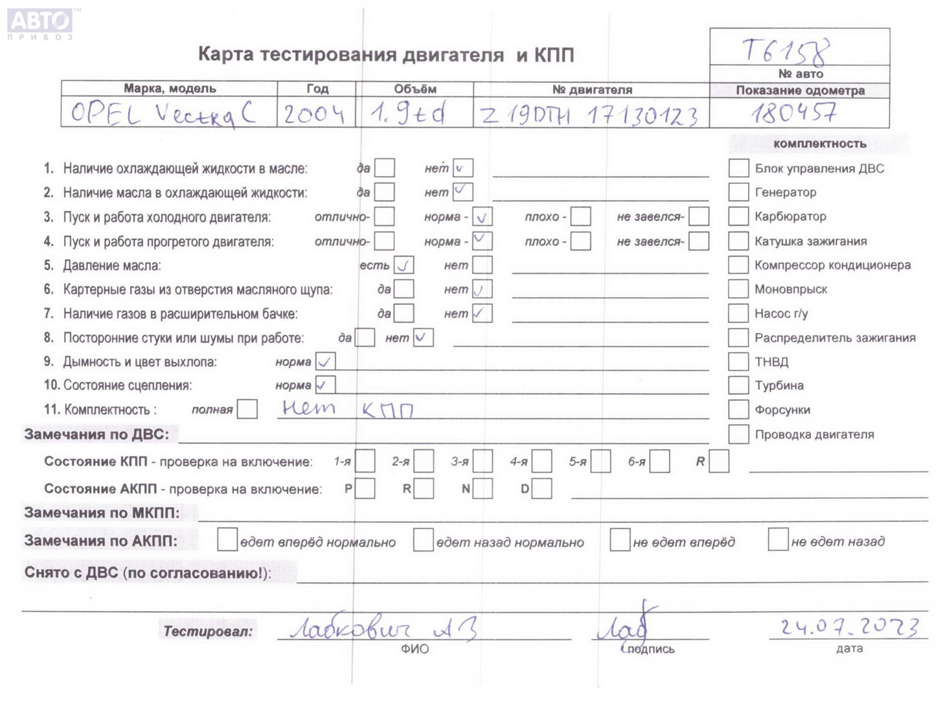 | Марка / Модель / Год: | Opel Vectra C (2002-2008) 2006 |