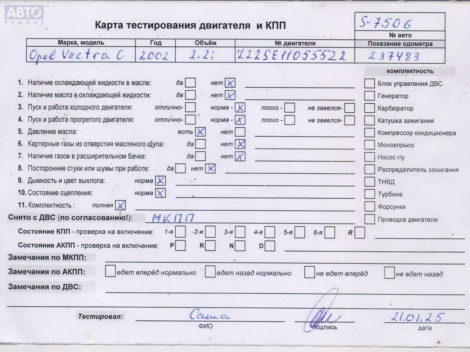 | Марка / Модель / Год: | Opel Vectra C (2002-2008) 2002 |