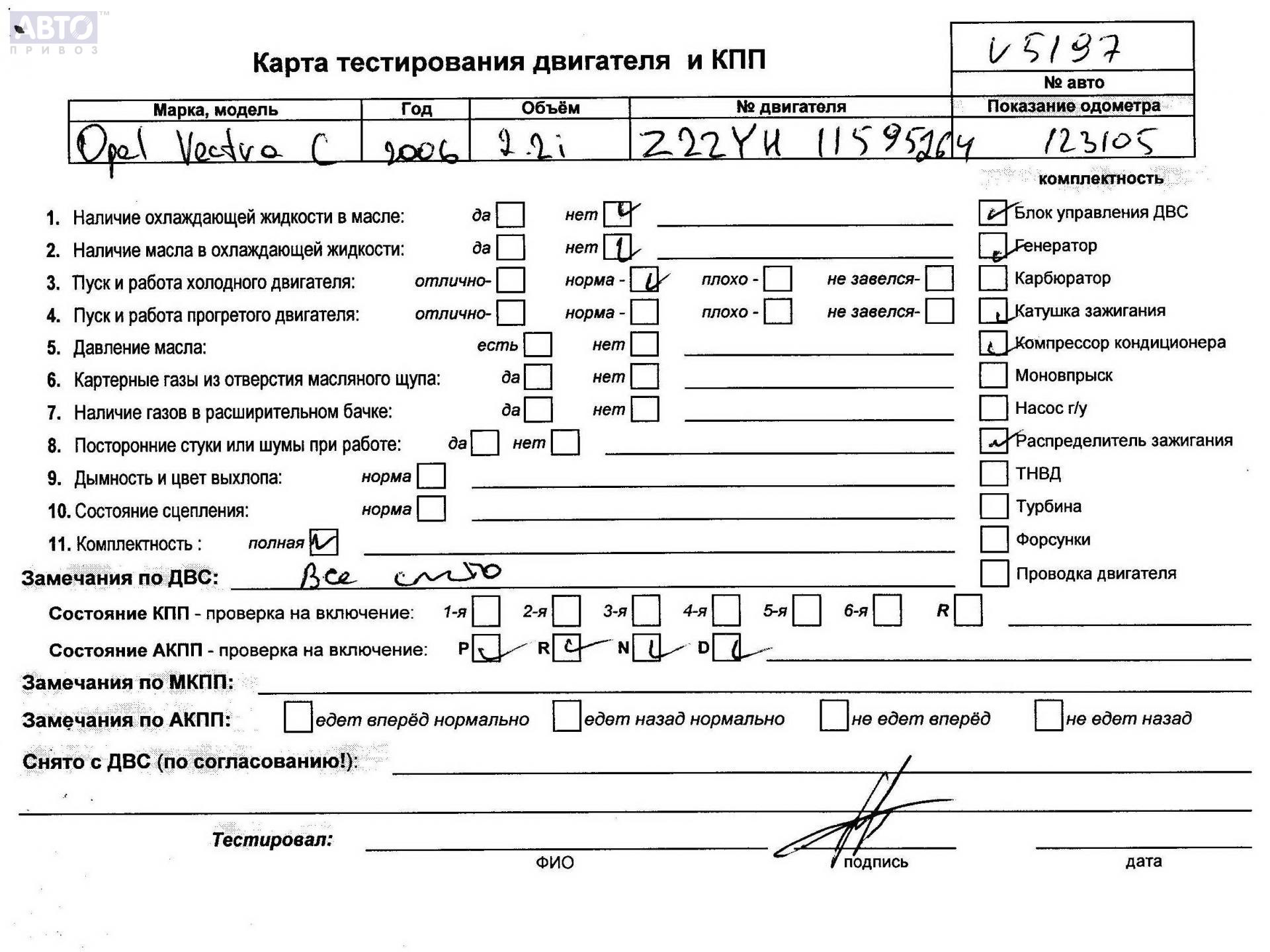 | Марка / Модель / Год: | Opel Vectra C (2002-2008) 2006 |