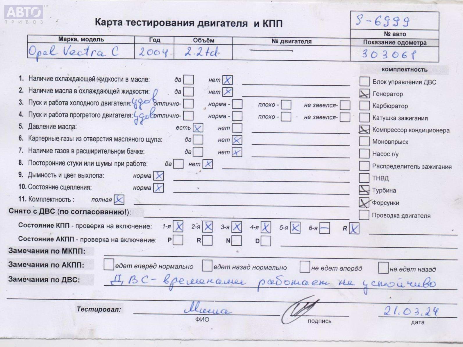 | Марка / Модель / Год: | Opel Vectra C (2002-2008) 2002 |