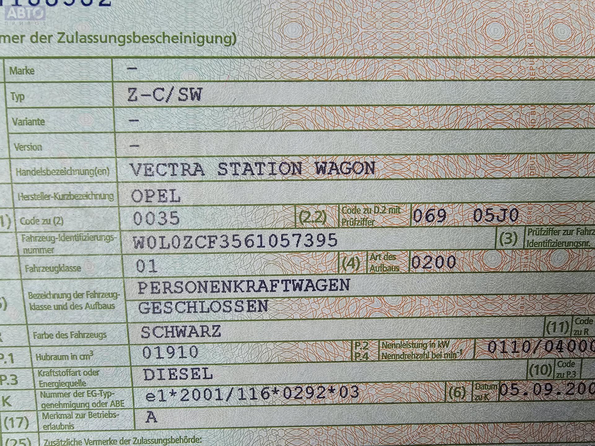 | Марка / Модель / Год: | Opel Vectra C (2002-2008) 2005 |