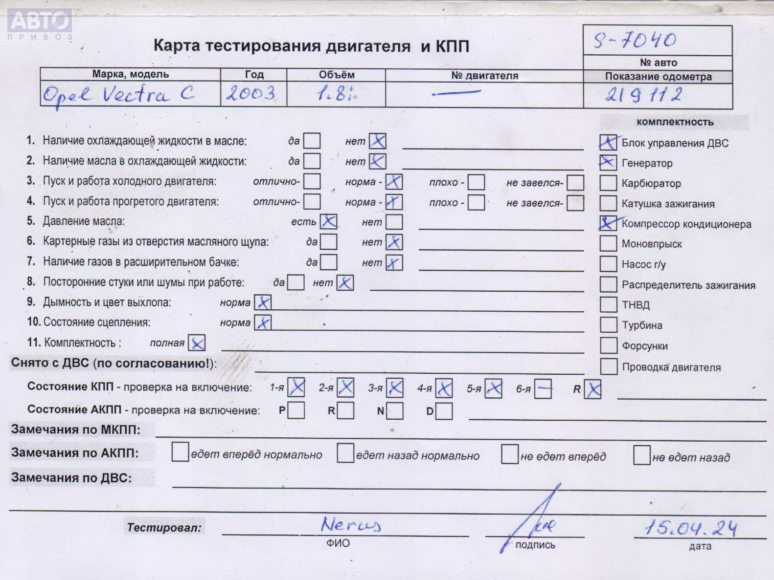 | Марка / Модель / Год: | Opel Vectra C (2002-2008) 2003 |