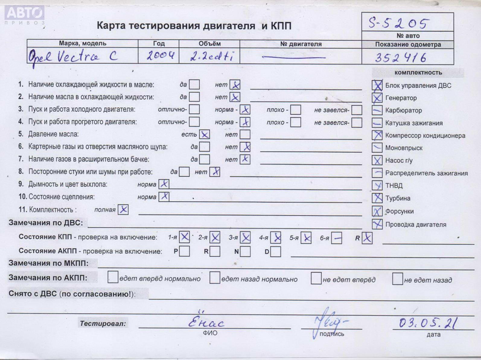 | Марка / Модель / Год: | Opel Vectra C (2002-2008) 2004 |