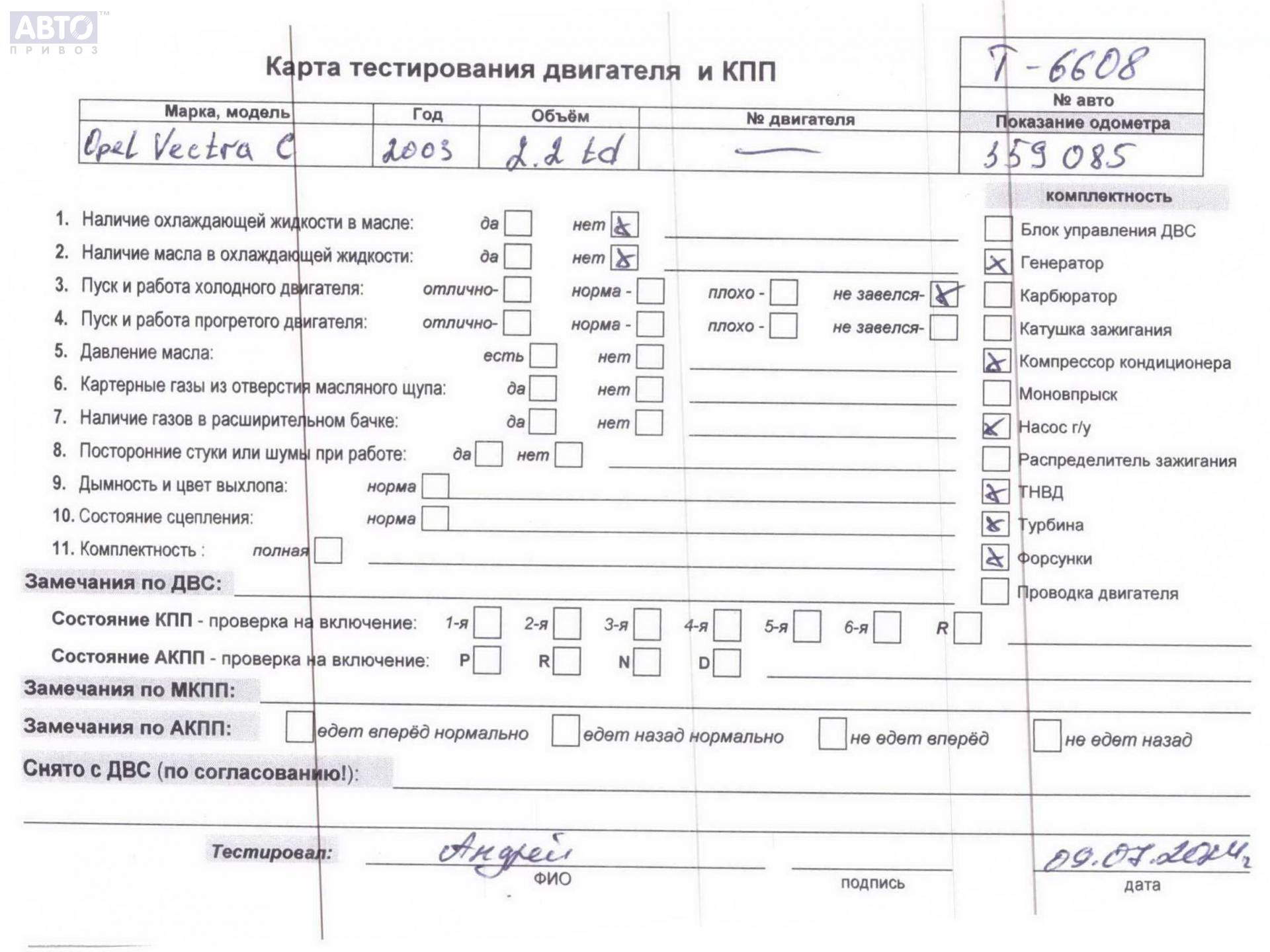 | Марка / Модель / Год: | Opel Vectra C (2002-2008) 2003 |