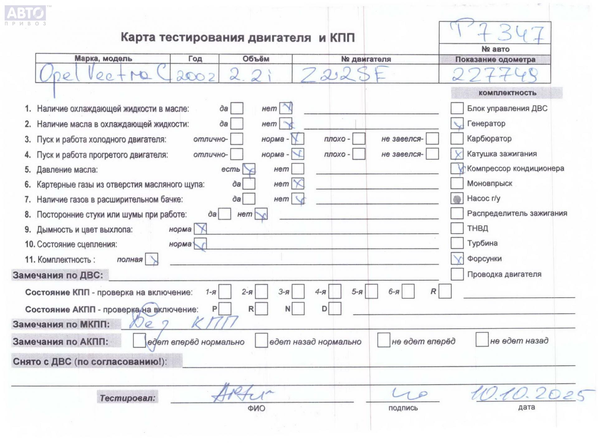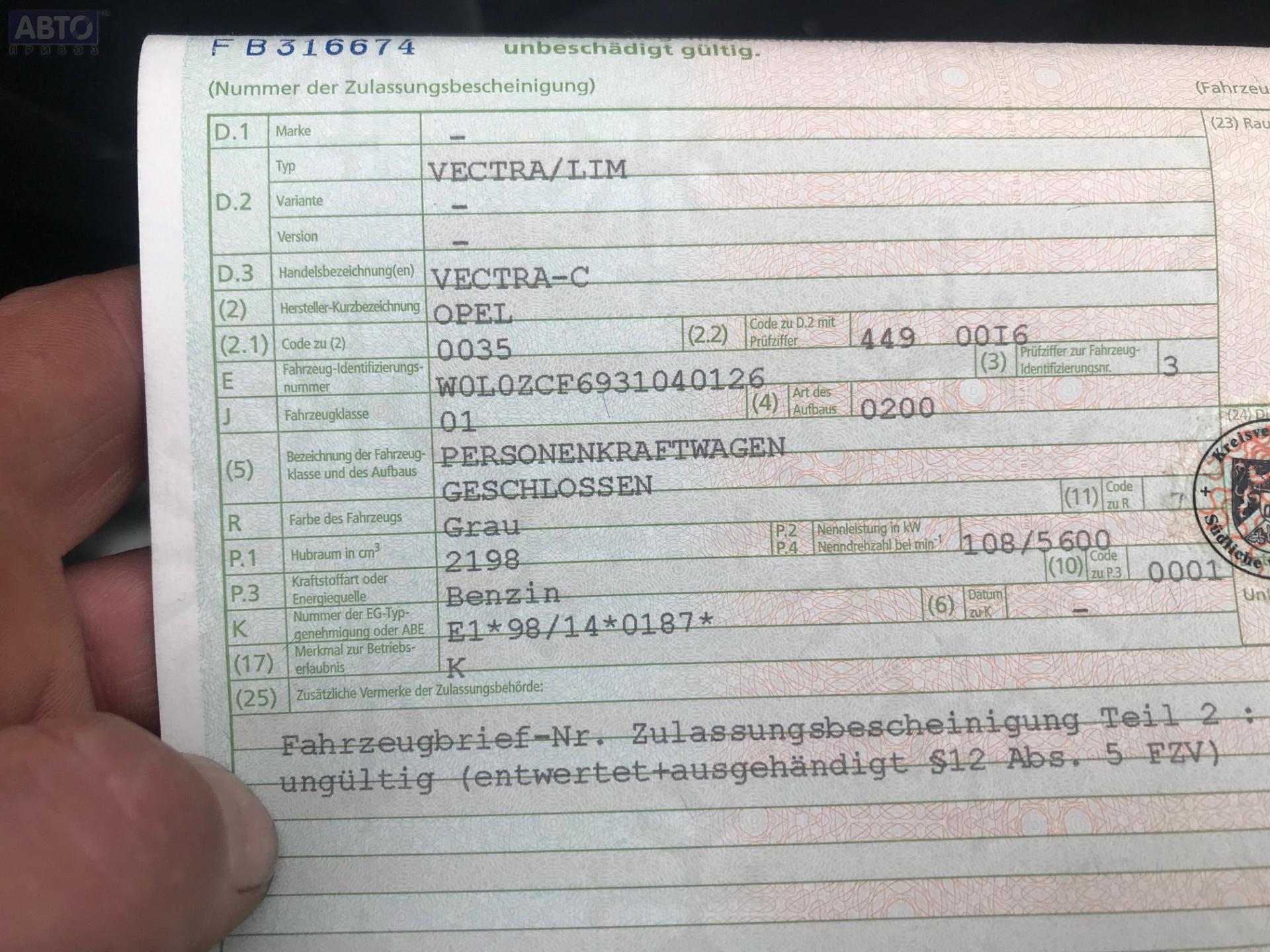 | Марка / Модель / Год: | Opel Vectra C (2002-2008) 2002 |