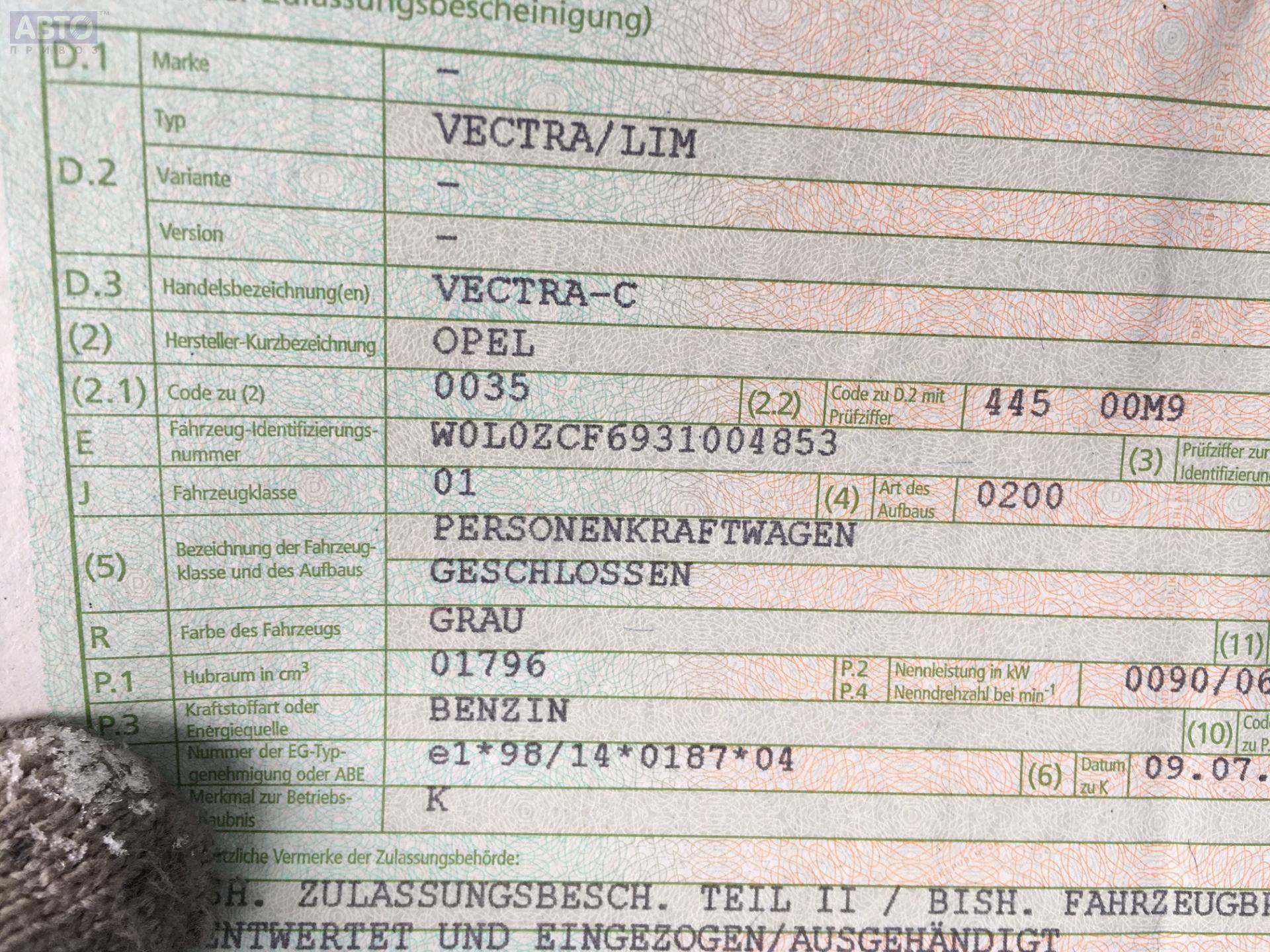 | Марка / Модель / Год: | Opel Vectra C (2002-2008) 2002 |
