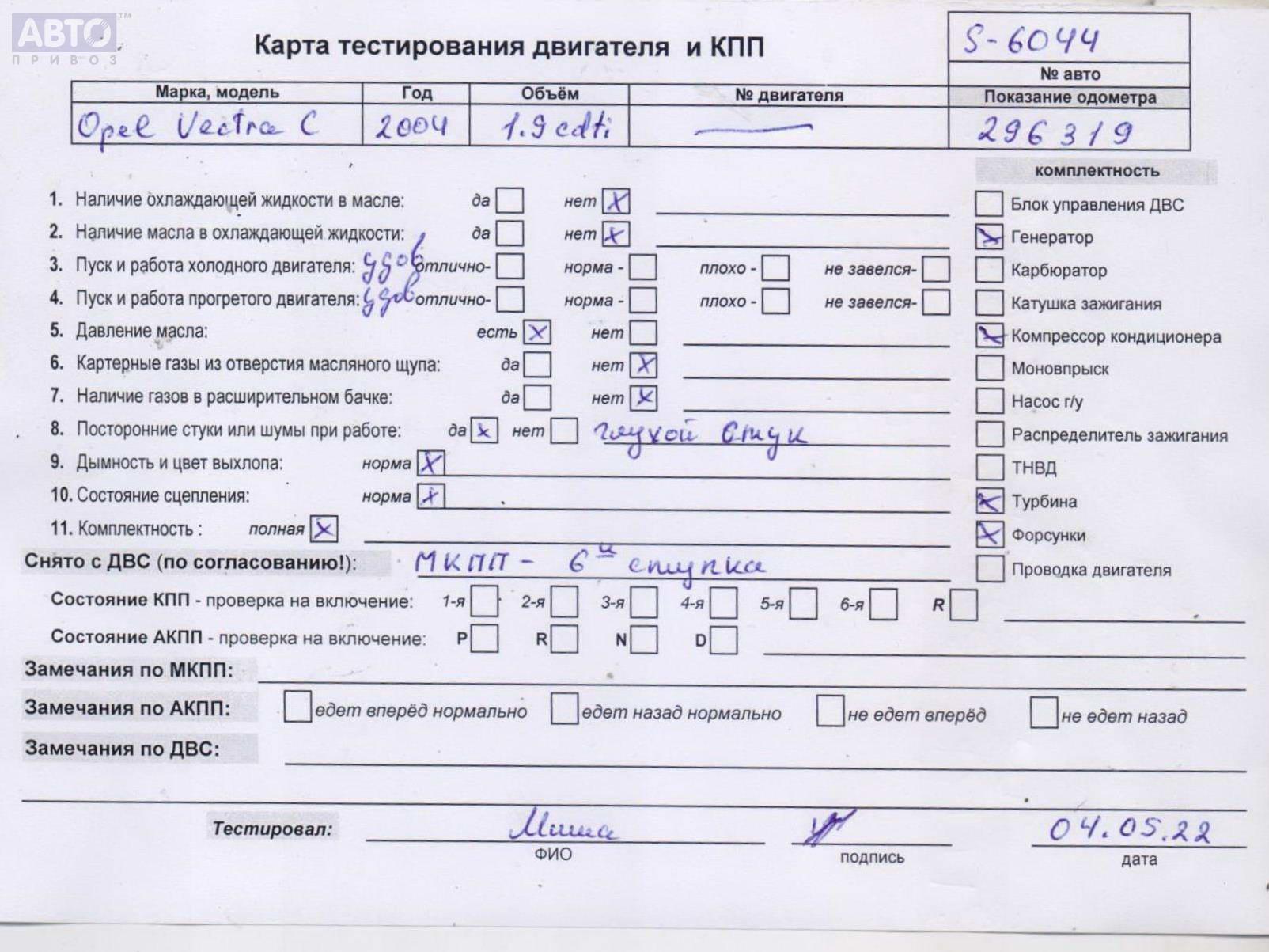 | Марка / Модель / Год: | Opel Vectra C (2002-2008) 2004 |