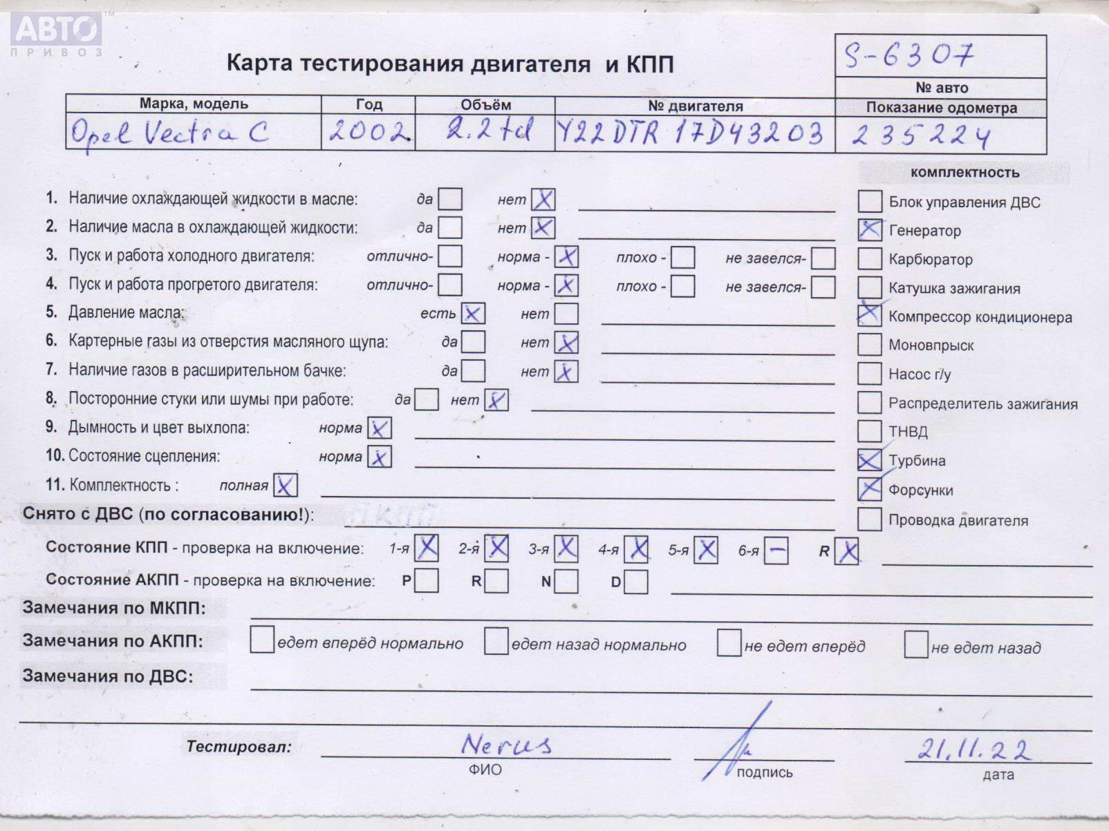 | Марка / Модель / Год: | Opel Vectra C (2002-2008) 2002 |