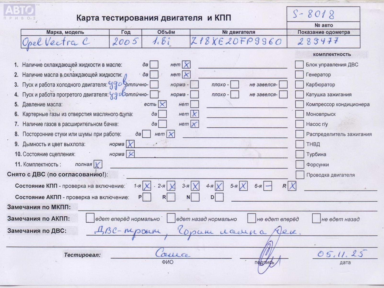 | Марка / Модель / Год: | Opel Vectra C (2002-2008) 2005 |
