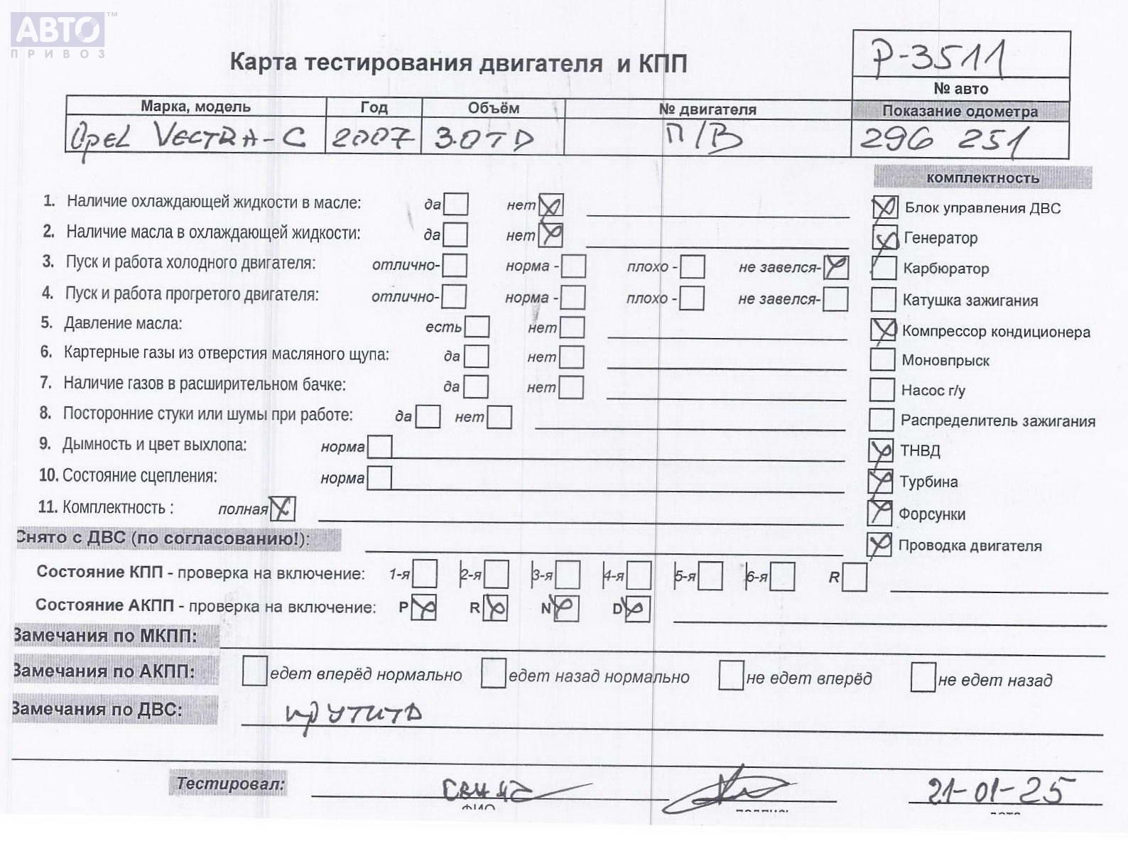 | Марка / Модель / Год: | Opel Vectra C (2002-2008) 2007 |