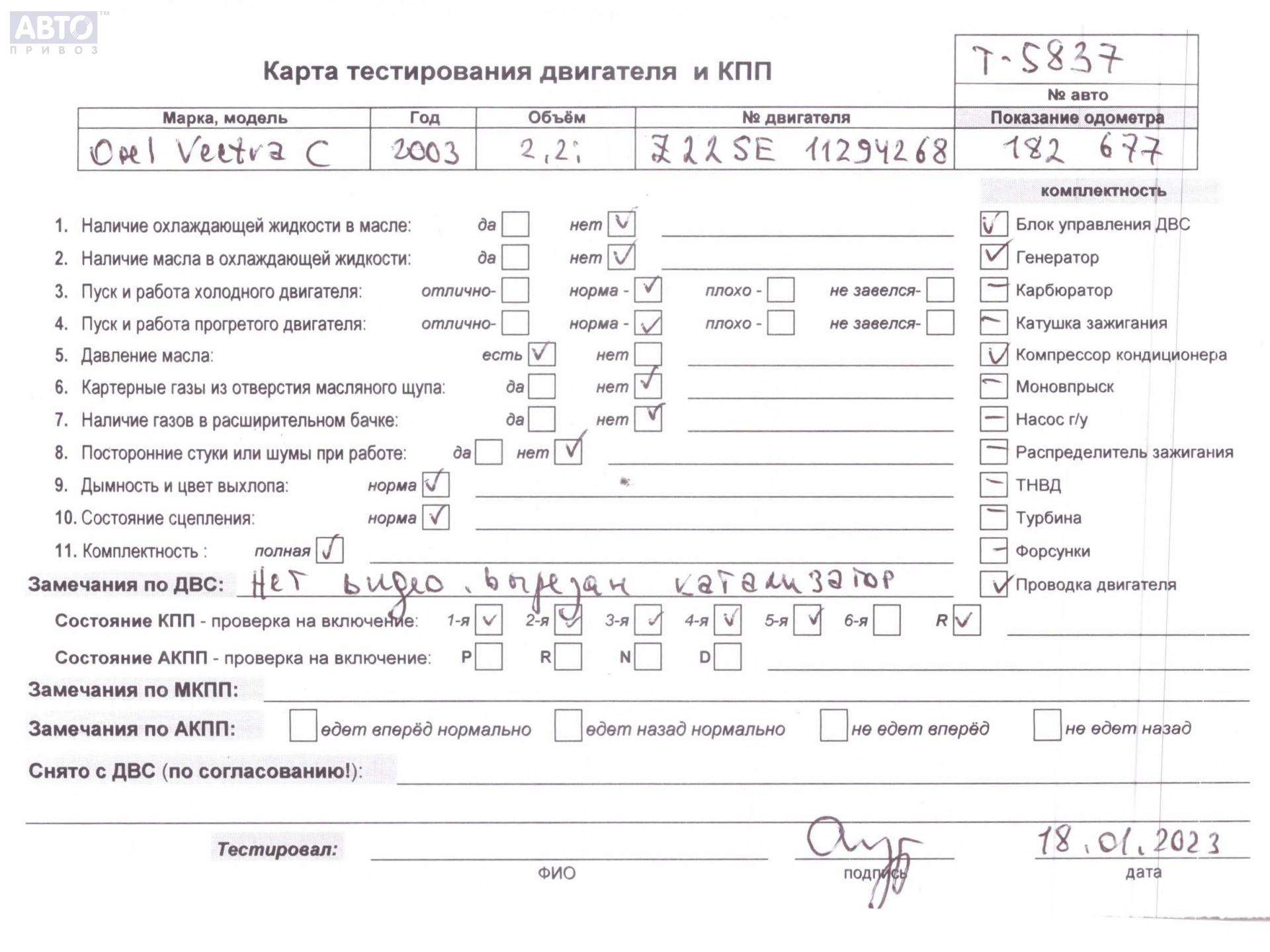 | Марка / Модель / Год: | Opel Vectra C (2002-2008) 2003 |
