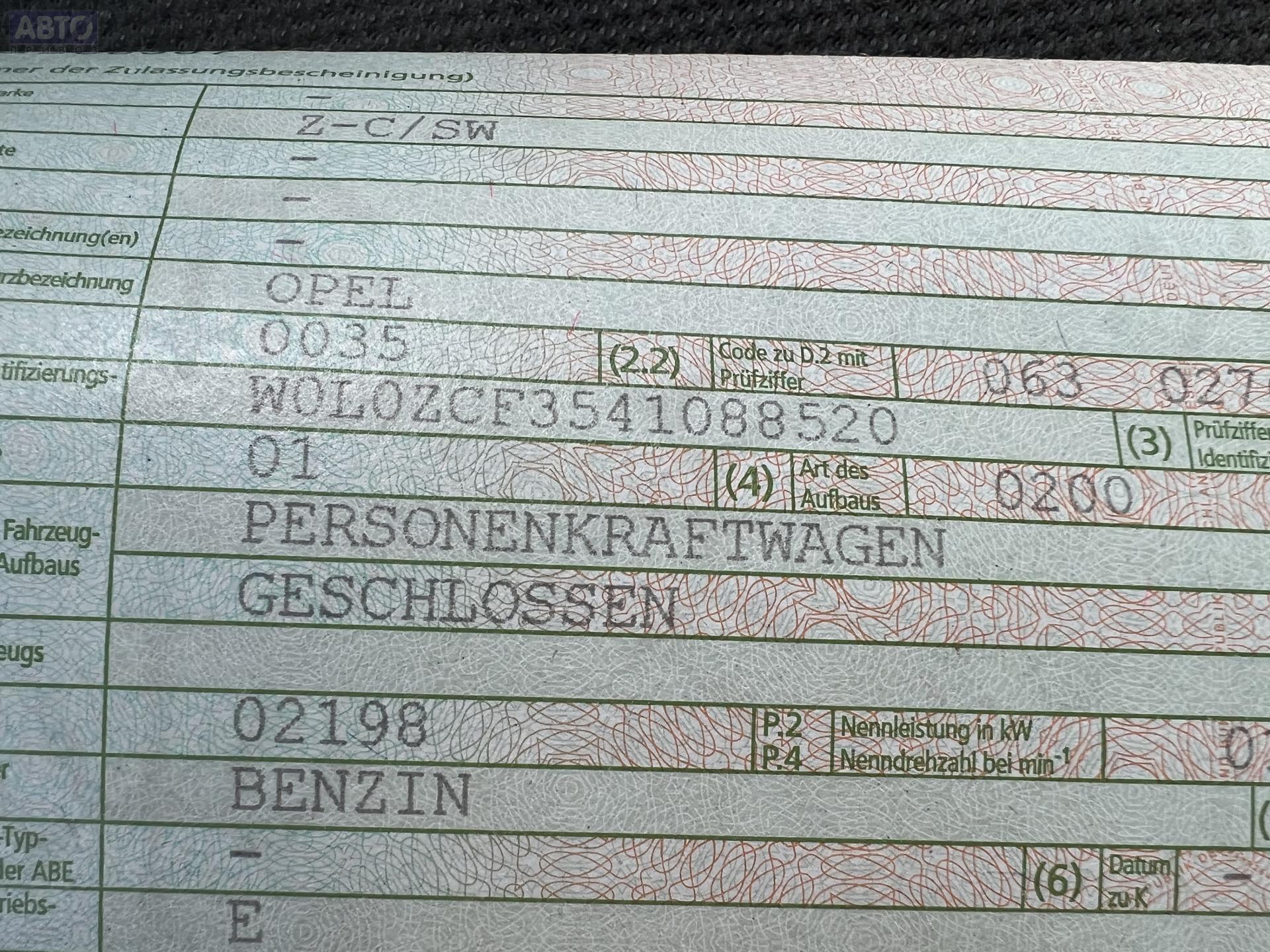 | Автомобиль / VIN: | T5558 W0L0ZCF3541088520 |