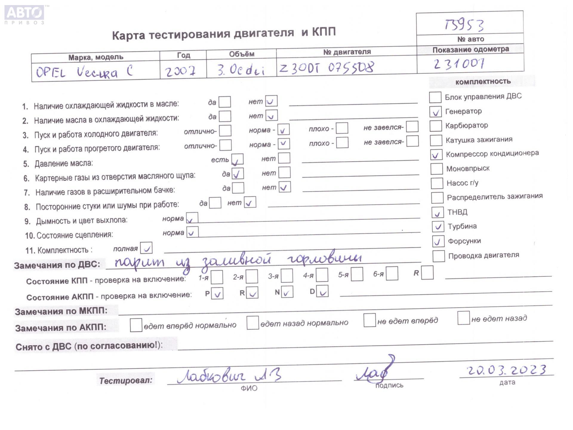 | Марка / Модель / Год: | Opel Vectra C (2002-2008) 2006 |