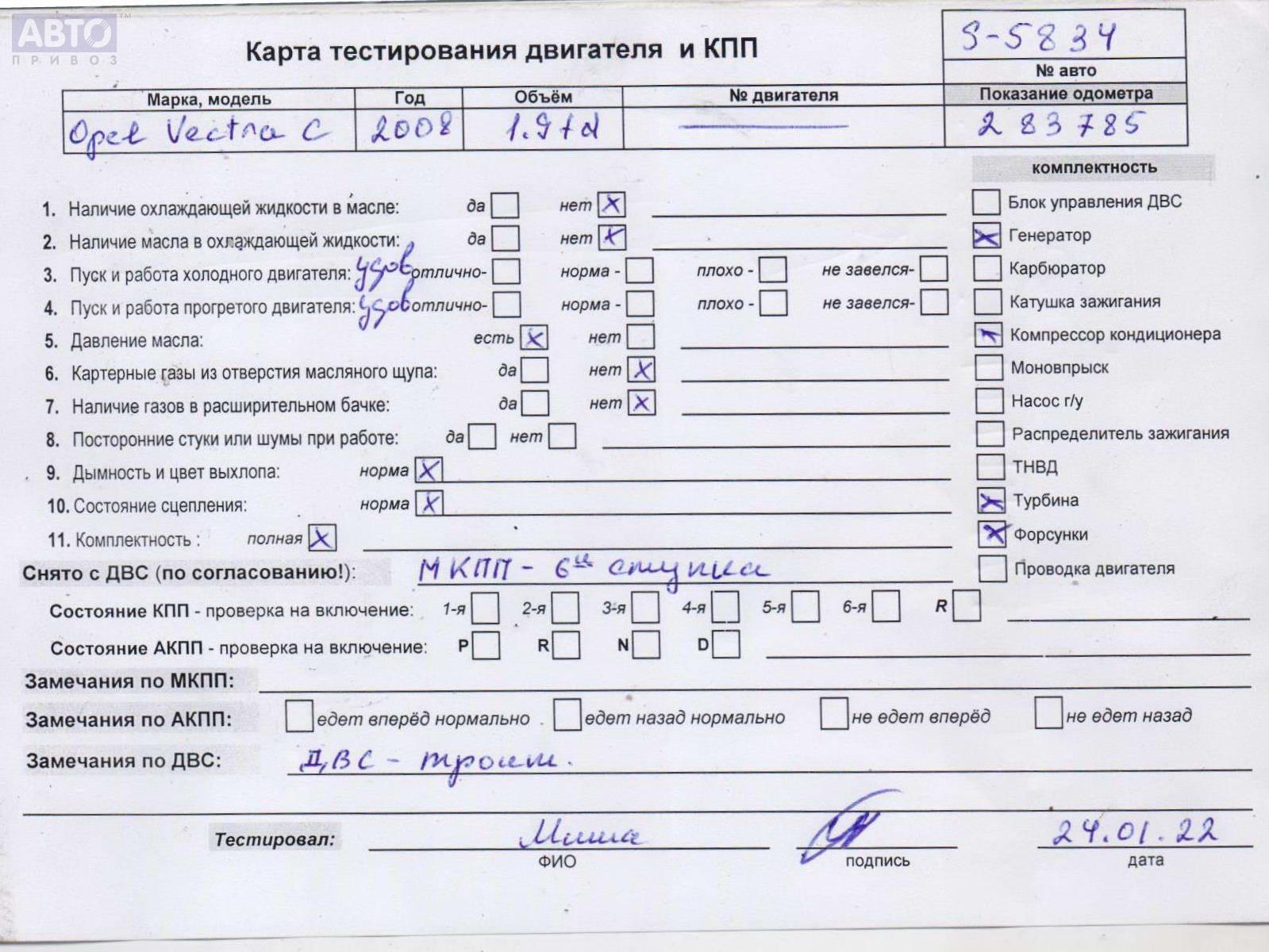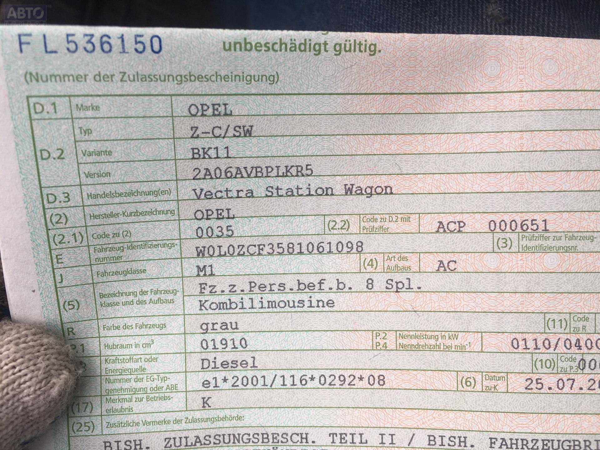 | Марка / Модель / Год: | Opel Vectra C (2002-2008) 2008 |