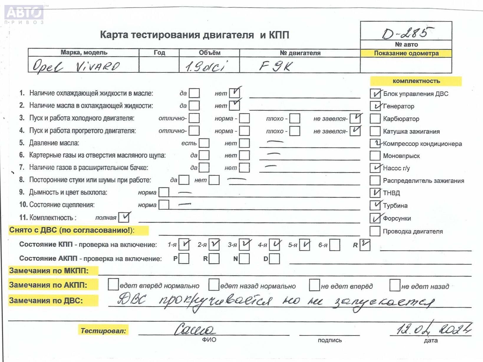 | Марка / Модель / Год: | Opel Vivaro A (2001-2014) 2003 |