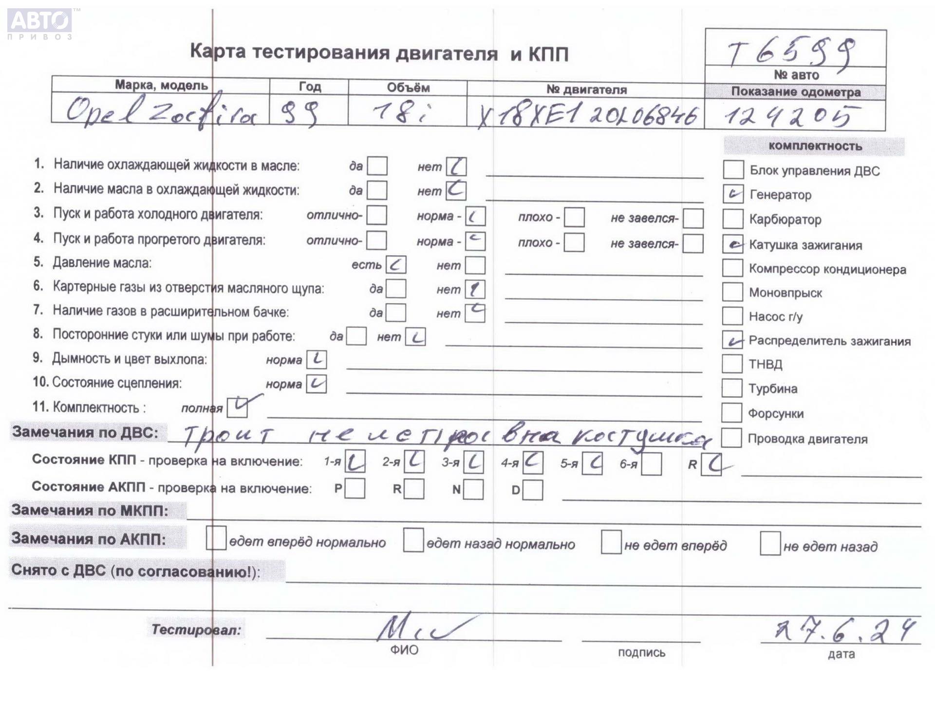 | Автомобиль / VIN: | T6599 W0L0TGF75Y2069054 |