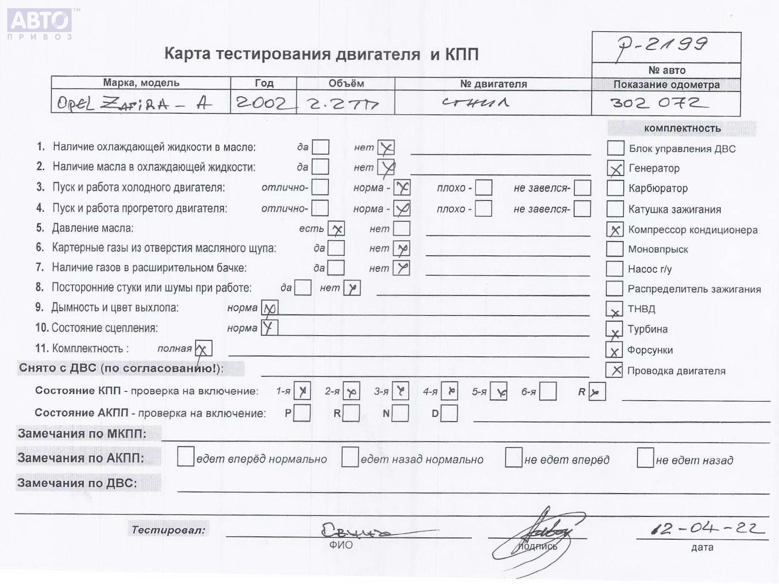 | Марка / Модель / Год: | Opel Zafira A (1999-2005) 2002 |