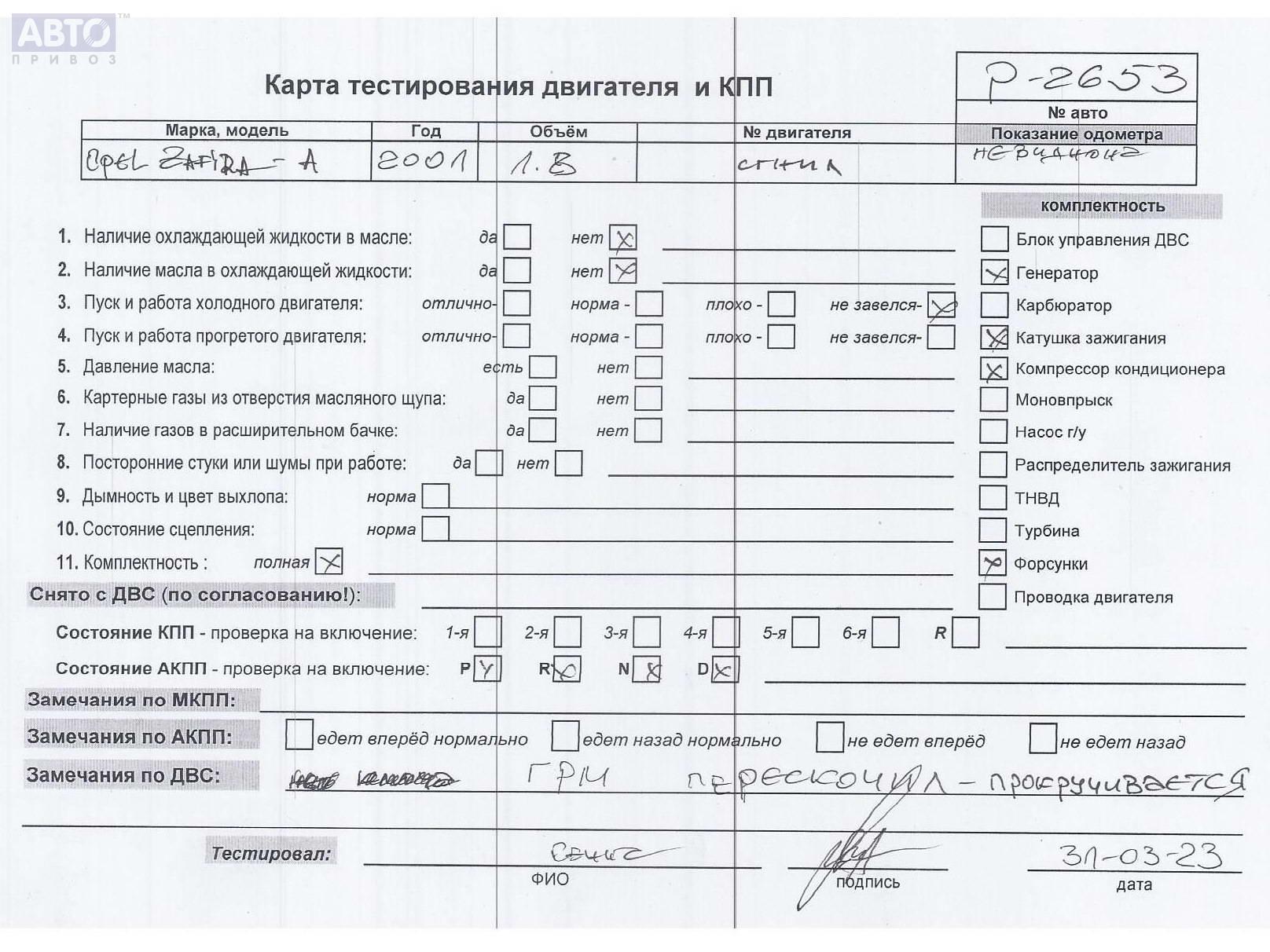 | Марка / Модель / Год: | Opel Zafira A (1999-2005) 2001 |