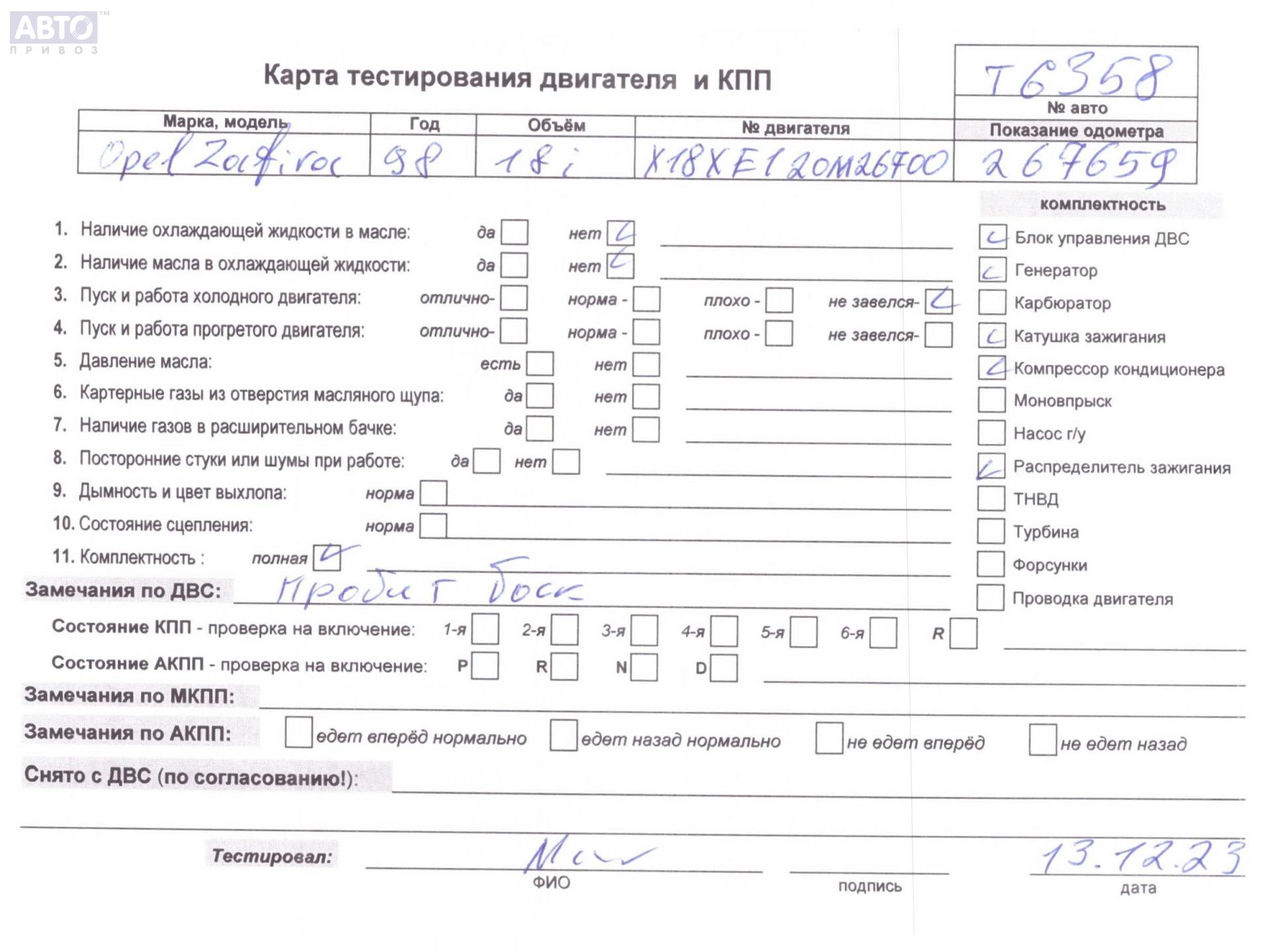 | Марка / Модель / Год: | Opel Zafira A (1999-2005) 2000 |