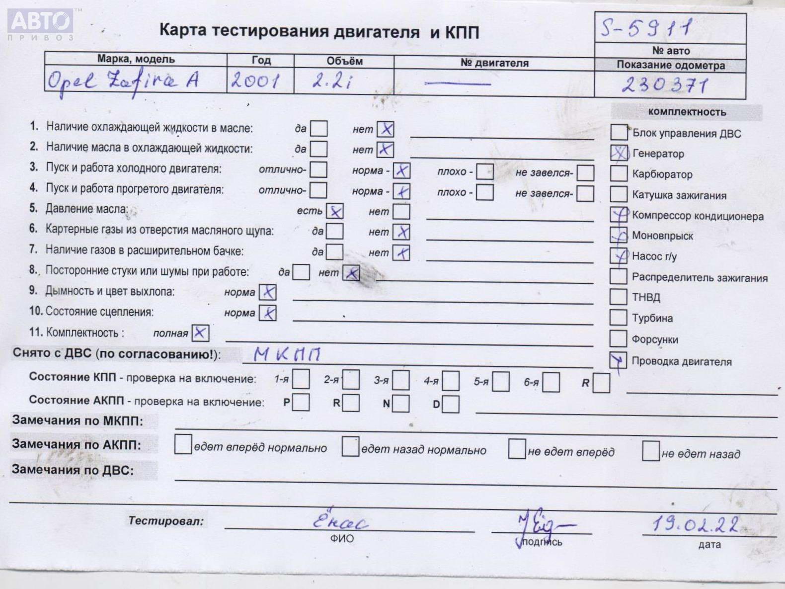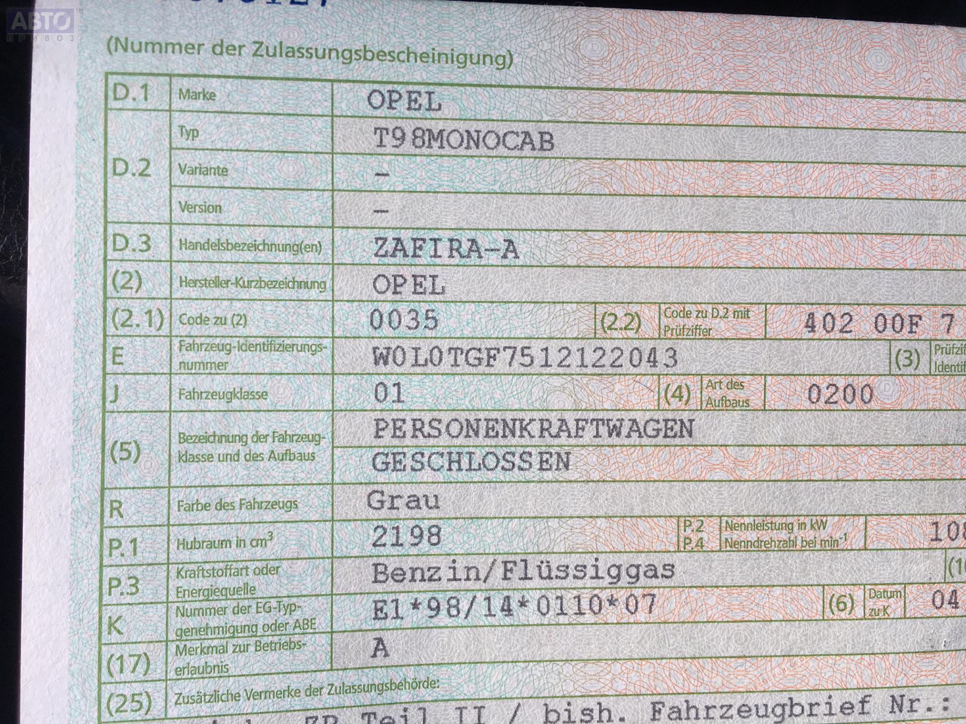 | Марка / Модель / Год: | Opel Zafira A (1999-2005) 2001 |