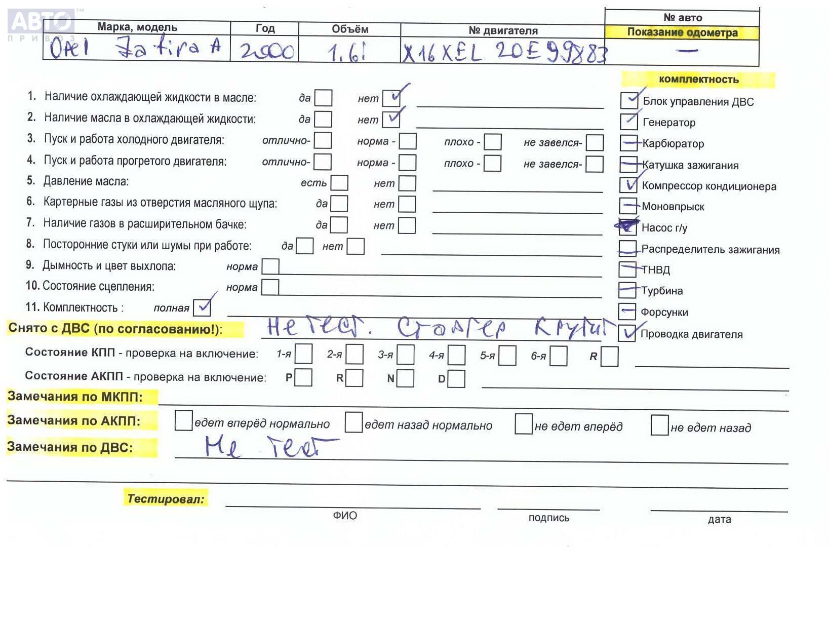 | Марка / Модель / Год: | Opel Zafira A (1999-2005) 2000 |