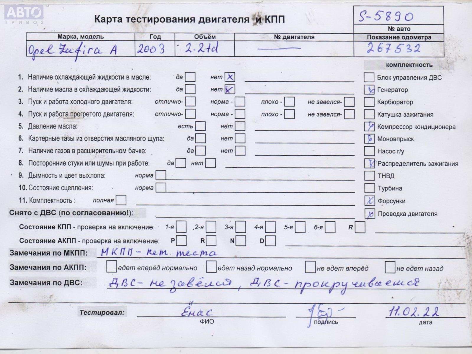 | Марка / Модель / Год: | Opel Zafira A (1999-2005) 2003 |
