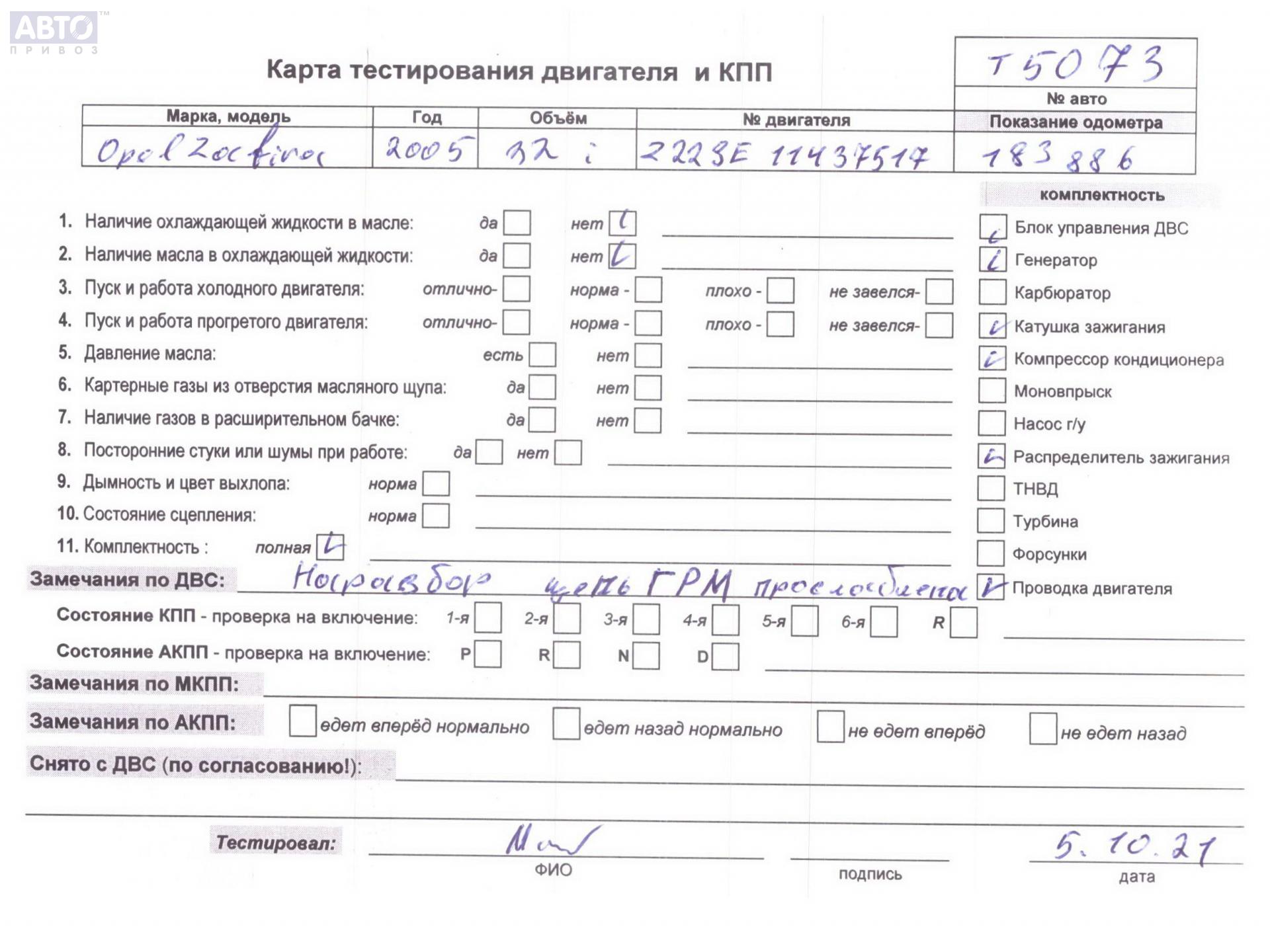 | Марка / Модель / Год: | Opel Zafira A (1999-2005) 2005 |
